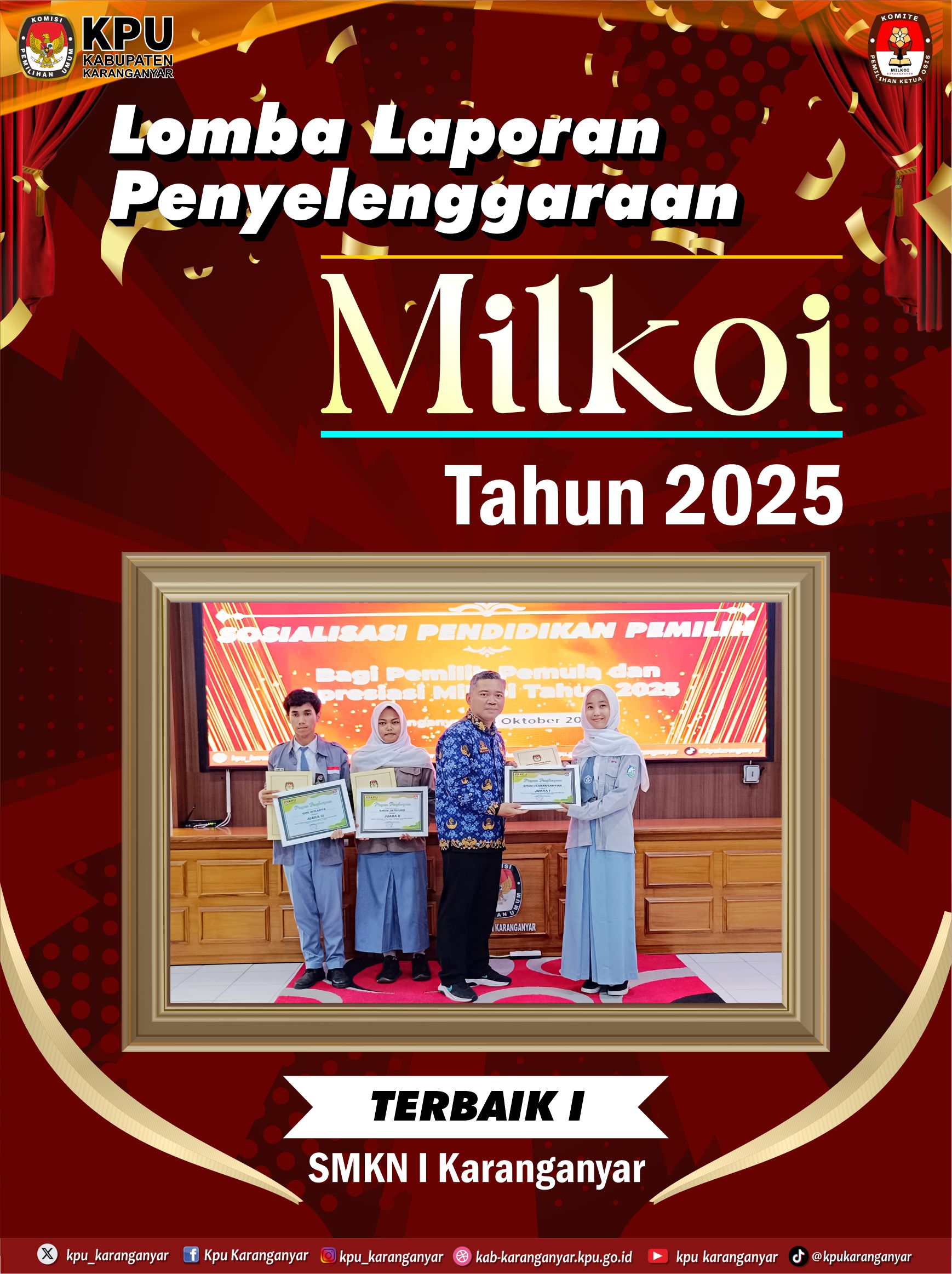 #TemanPemilih, Selamat kepada SMKN I Karanganyar yang menjadi TERBAIK I Lomba Laporan Penyelenggaraan Milkoi Tahun 2025.