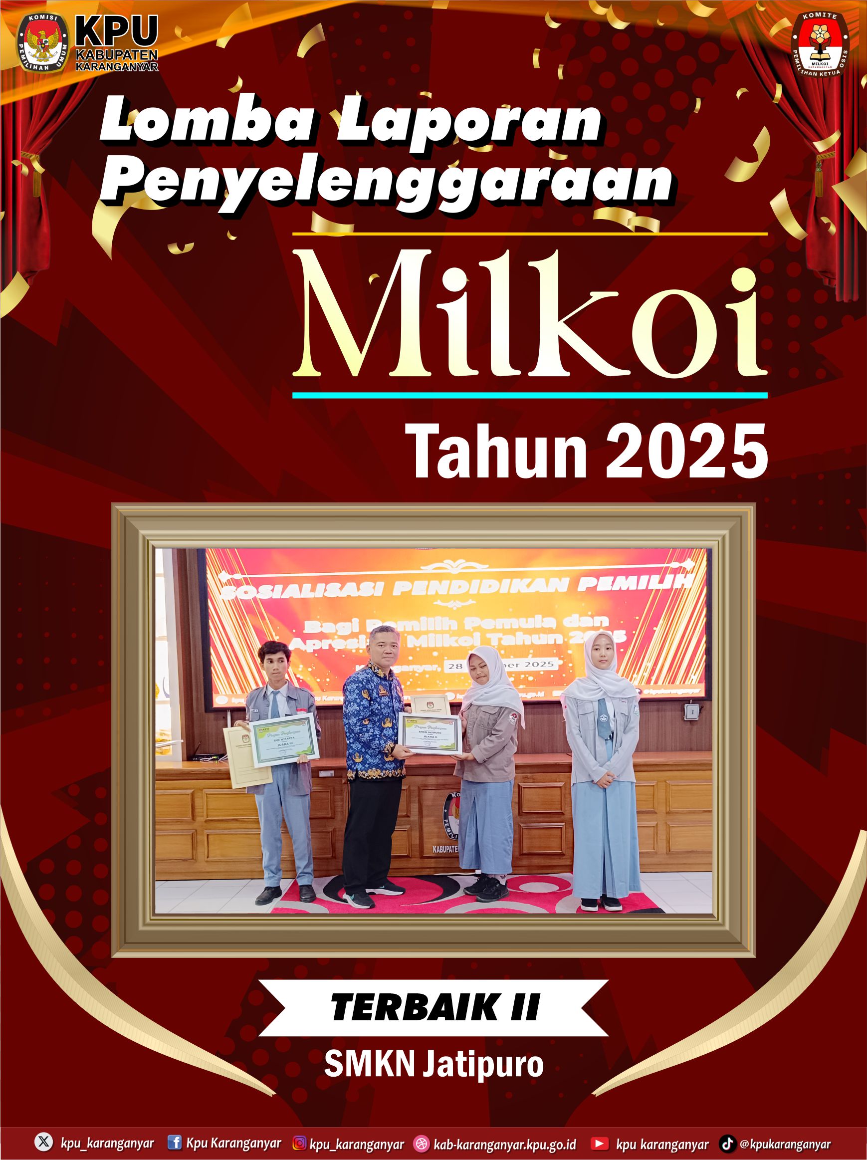 Selamat kepada SMKN Jatipuro yang menjadi TERBAIK II Lomba Laporan Penyelenggaraan Milkoi Tahun 2025.