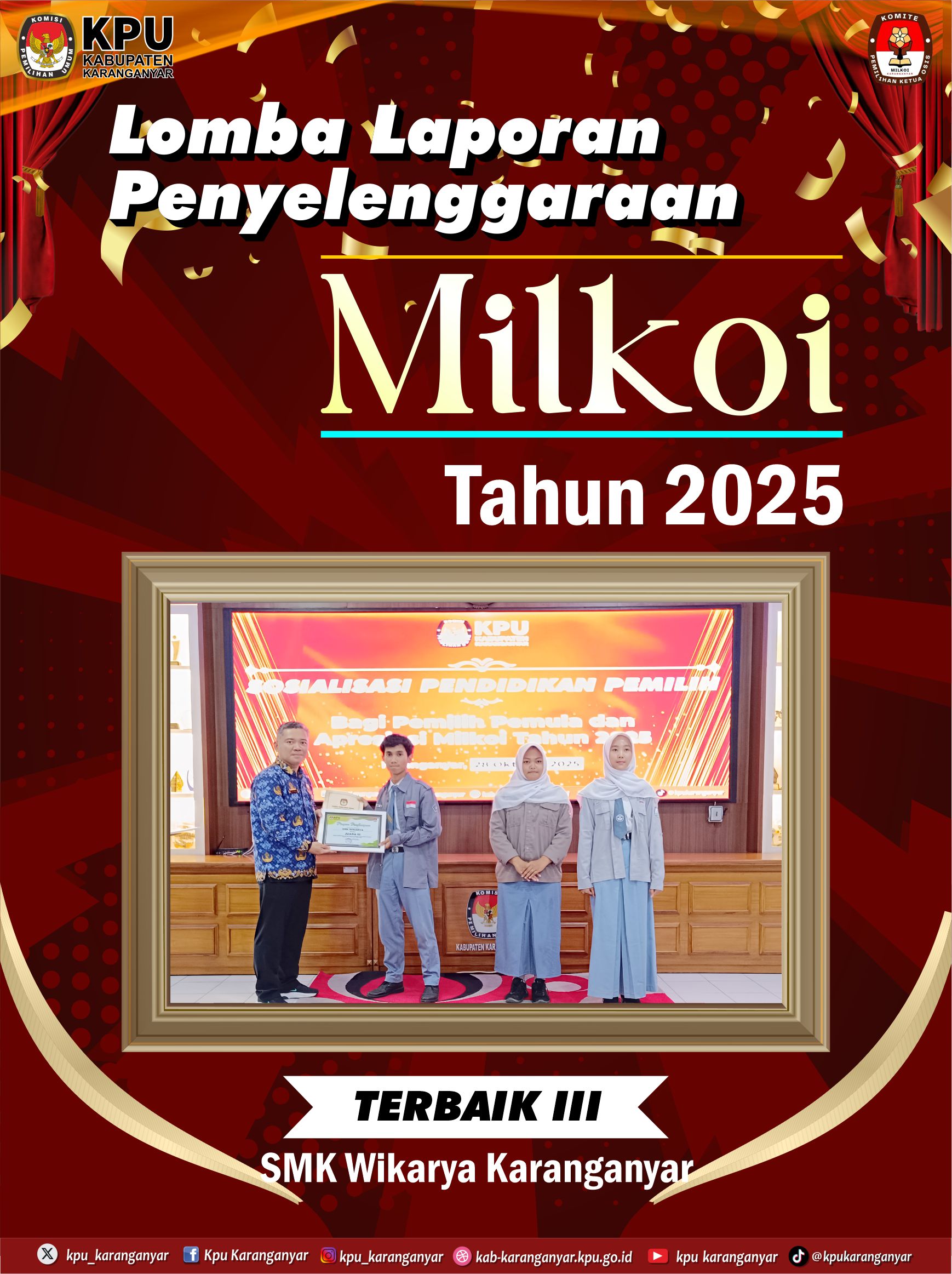 Selamat kepada SMK Wikarya Karanganyar yang menjadi TERBAIK III Lomba Laporan Penyelenggaraan Milkoi Tahun 2025.