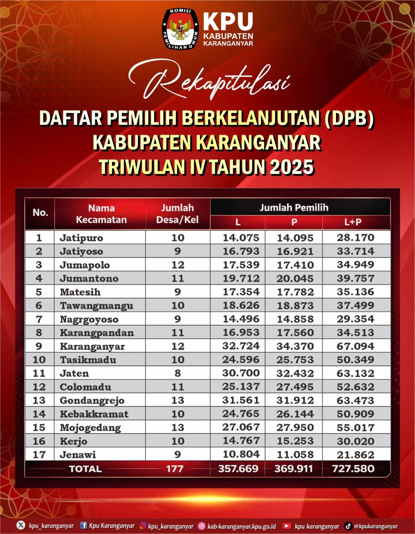 #temanpemiih mimin kasih info nih, ada Daftar Rekap DPB Kabupaten Karanganyar Tahun 2025