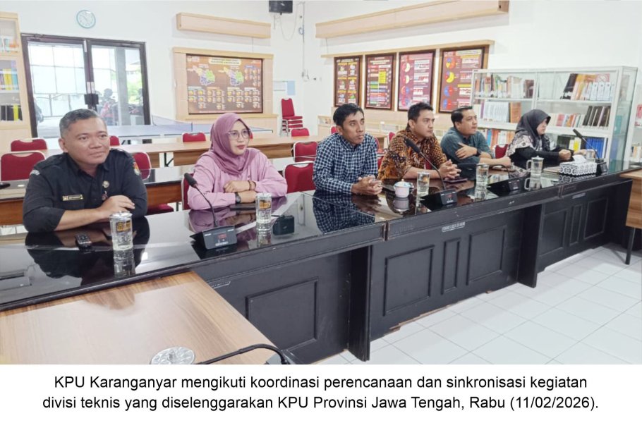 KARANGANYAR – KPU Kabupaten Karanganyar mengikuti koordinasi perencanaan dan sinkronisasi kegiatan divisi teknis yang diselenggarakan KPU Provinsi Jawa Tengah, Rabu (11/02/2026). Hal ini dilaksanakan untuk mempersiapkan tata kelola teknis kepemiluan yang lebih terintegritas dan efektif.