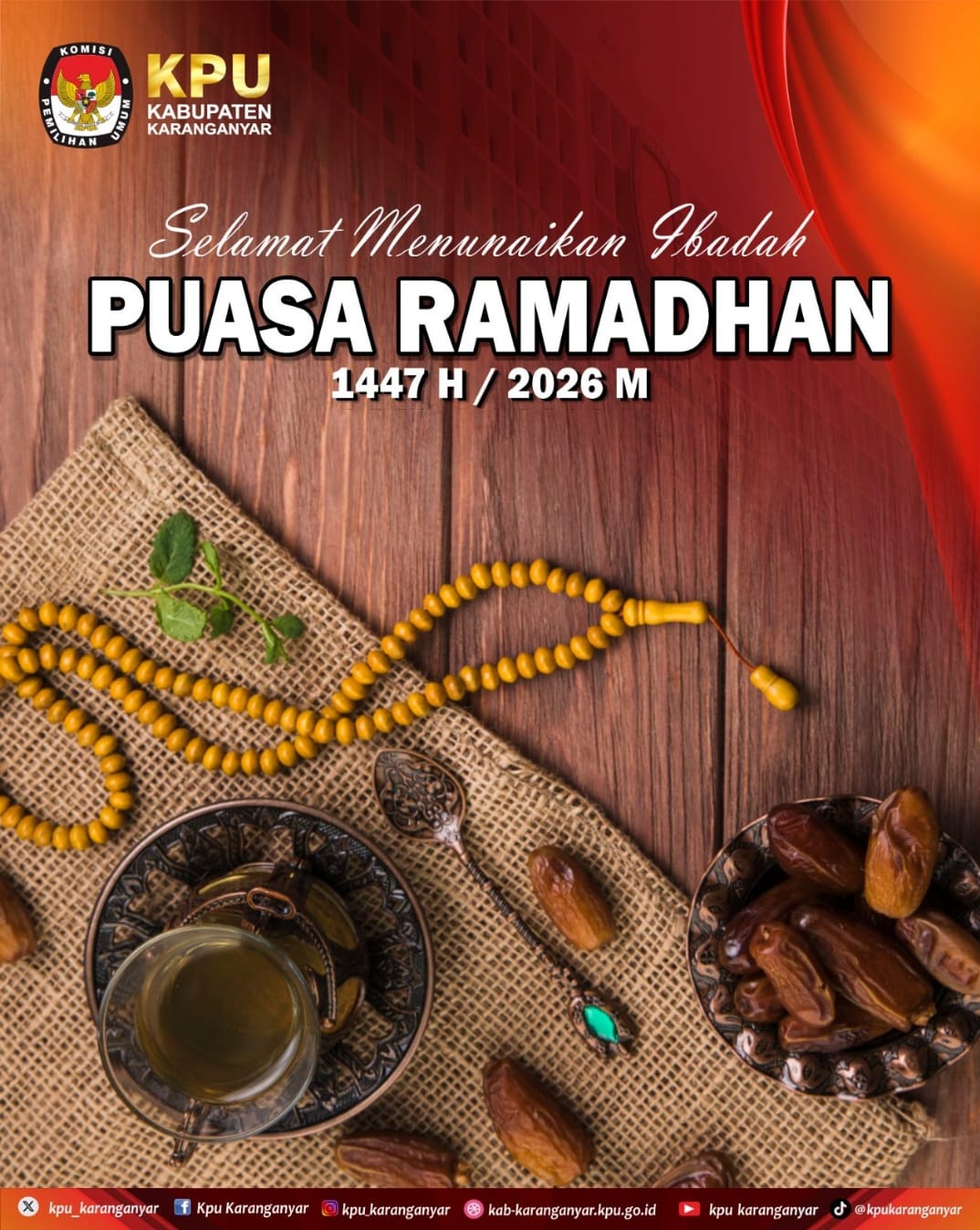 Segenap pimpinan dan staf KPU Kabupaten Karanganyar mengucapkan selamat menjalankan ibadah di bulan suci Ramadhan 1447 H.
