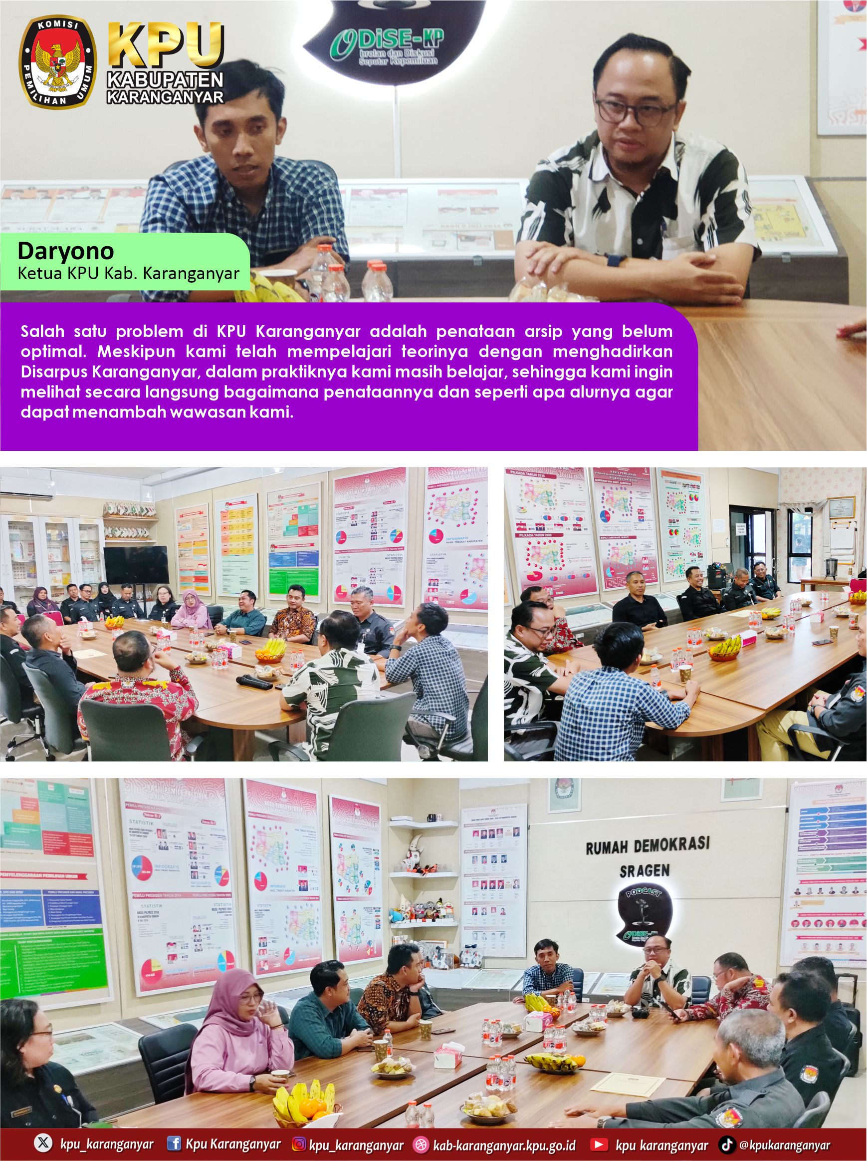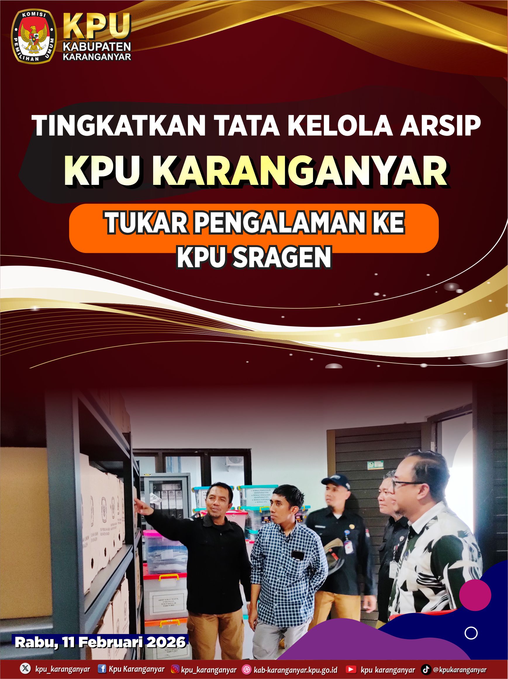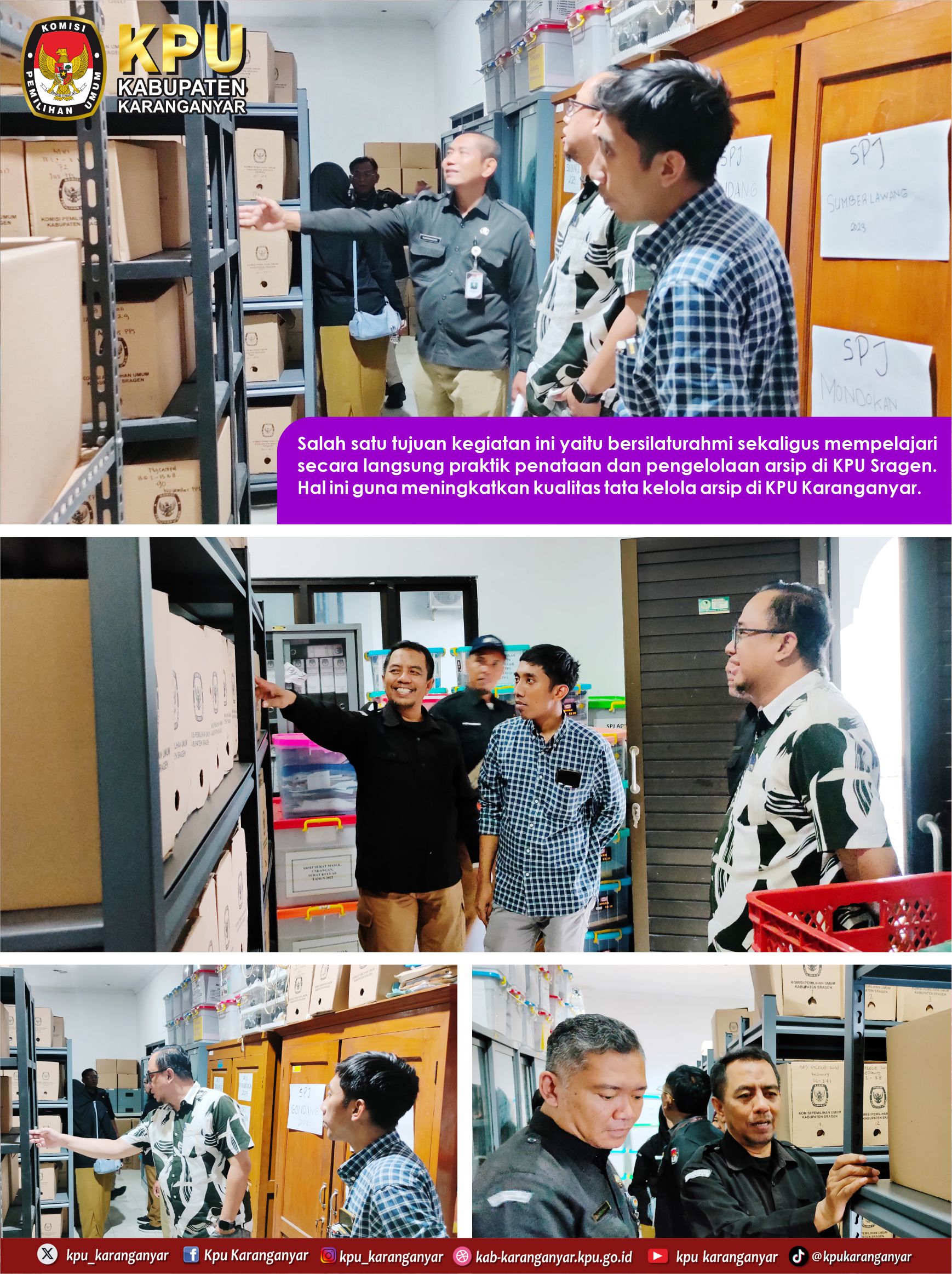 #Temanpemilih, Dalam rangka meningkatkan kualitas tata kelola kearsipan, KPU Kabupaten Karanganyar tukar pengalaman dalam pengelolaan dan penataan arsip dengan KPU Kabupaten Sragen.