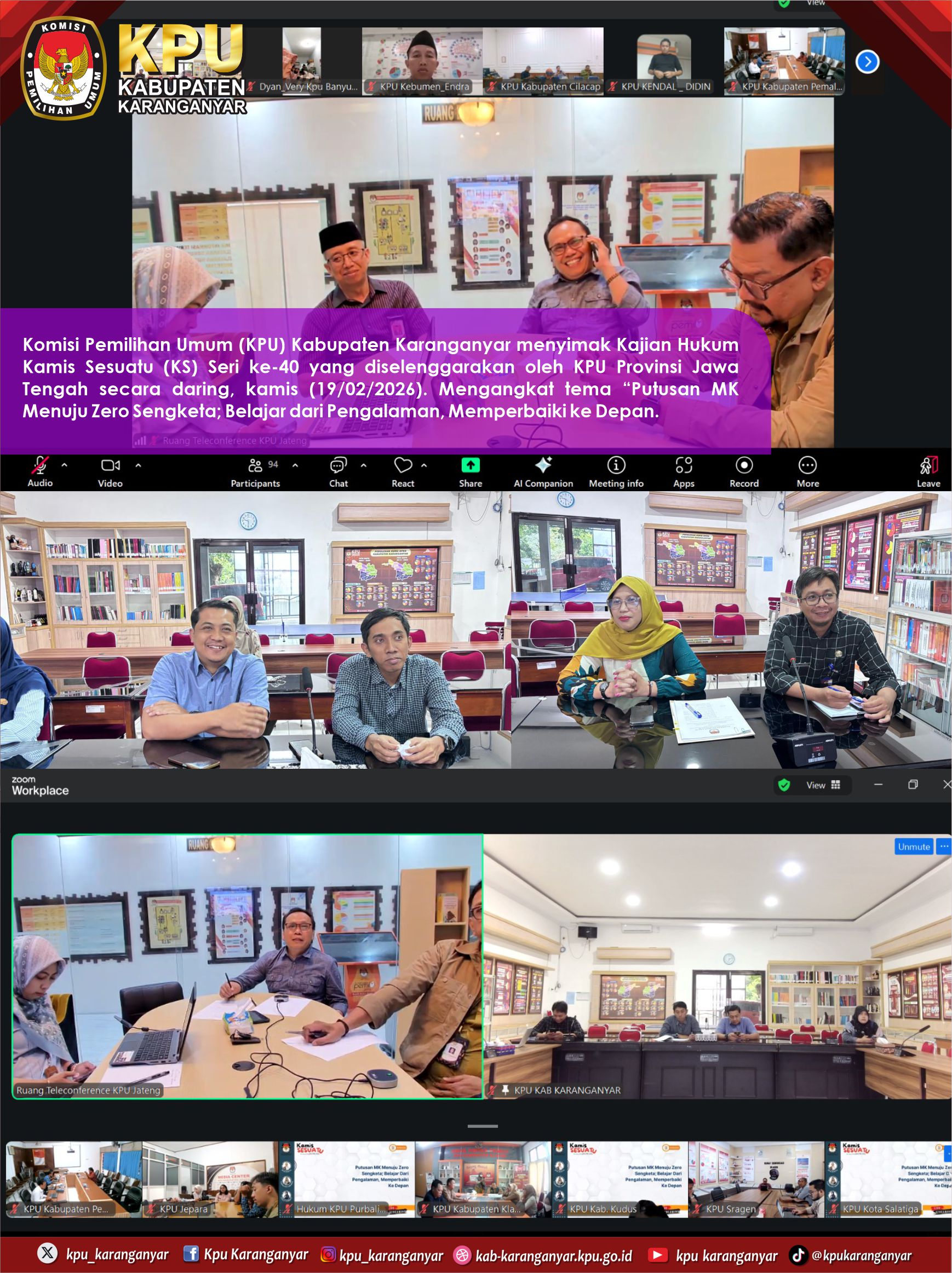 #Temanpemilih, KPU Karanganyar menyimak Kajian Hukum Kamis Sesuatu (KS) Seri ke-40 yang diselenggarakan oleh KPU Provinsi Jawa Tengah secara daring, kamis (19/02/2026).