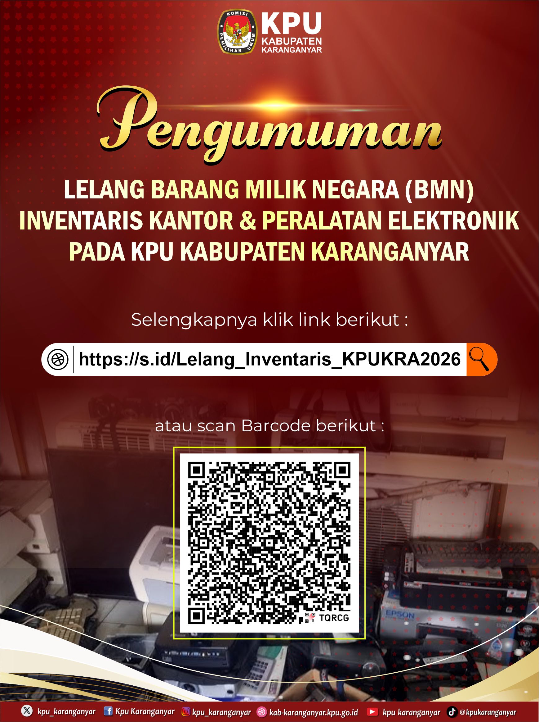 Selengkapnya klik : https://s.id/Lelang_Inventaris_KPUKRA2026