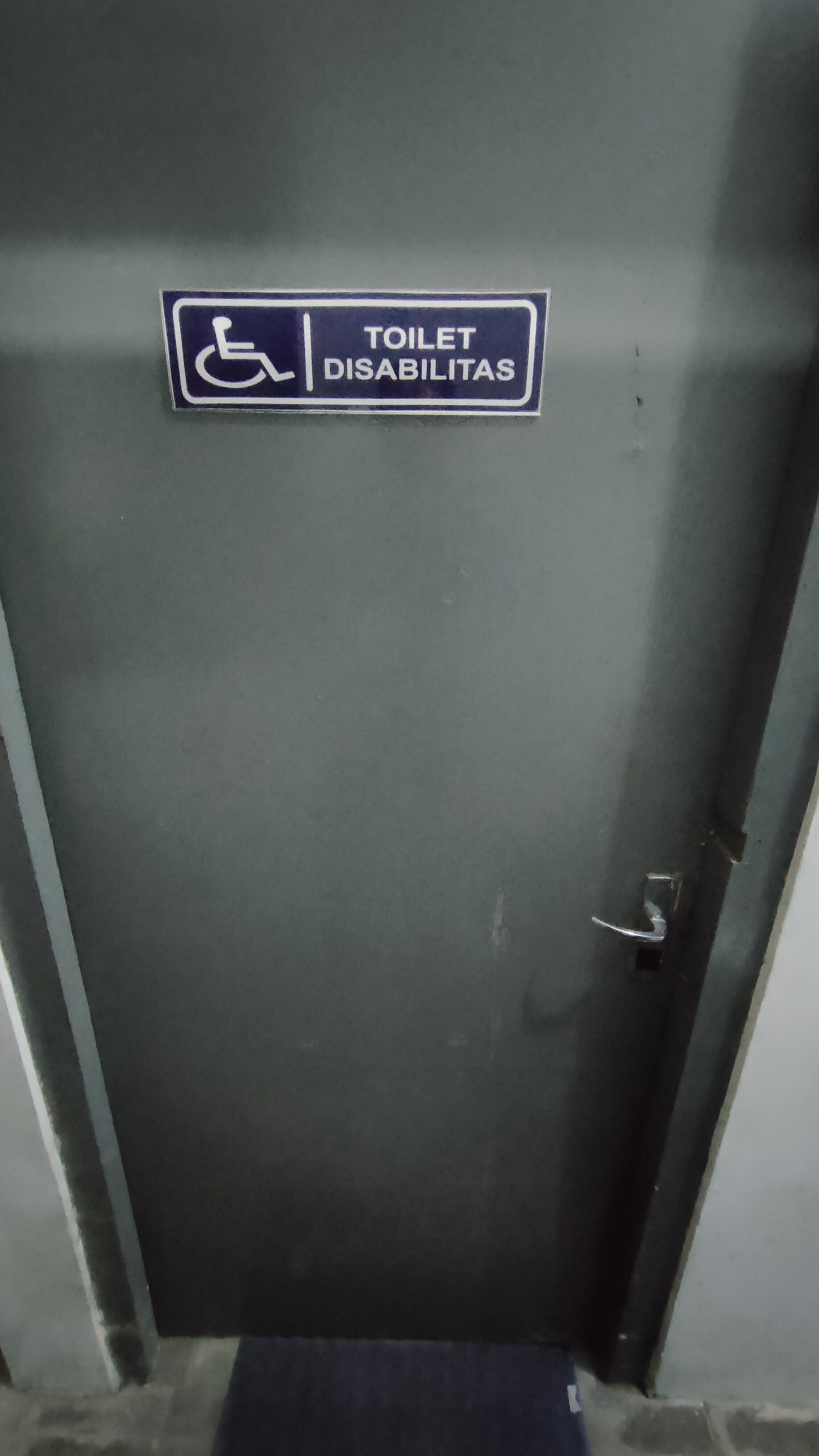 Jalur landai permanen dirancang memudahkan pengguna kursi roda untuk melintasinya menuju toilet