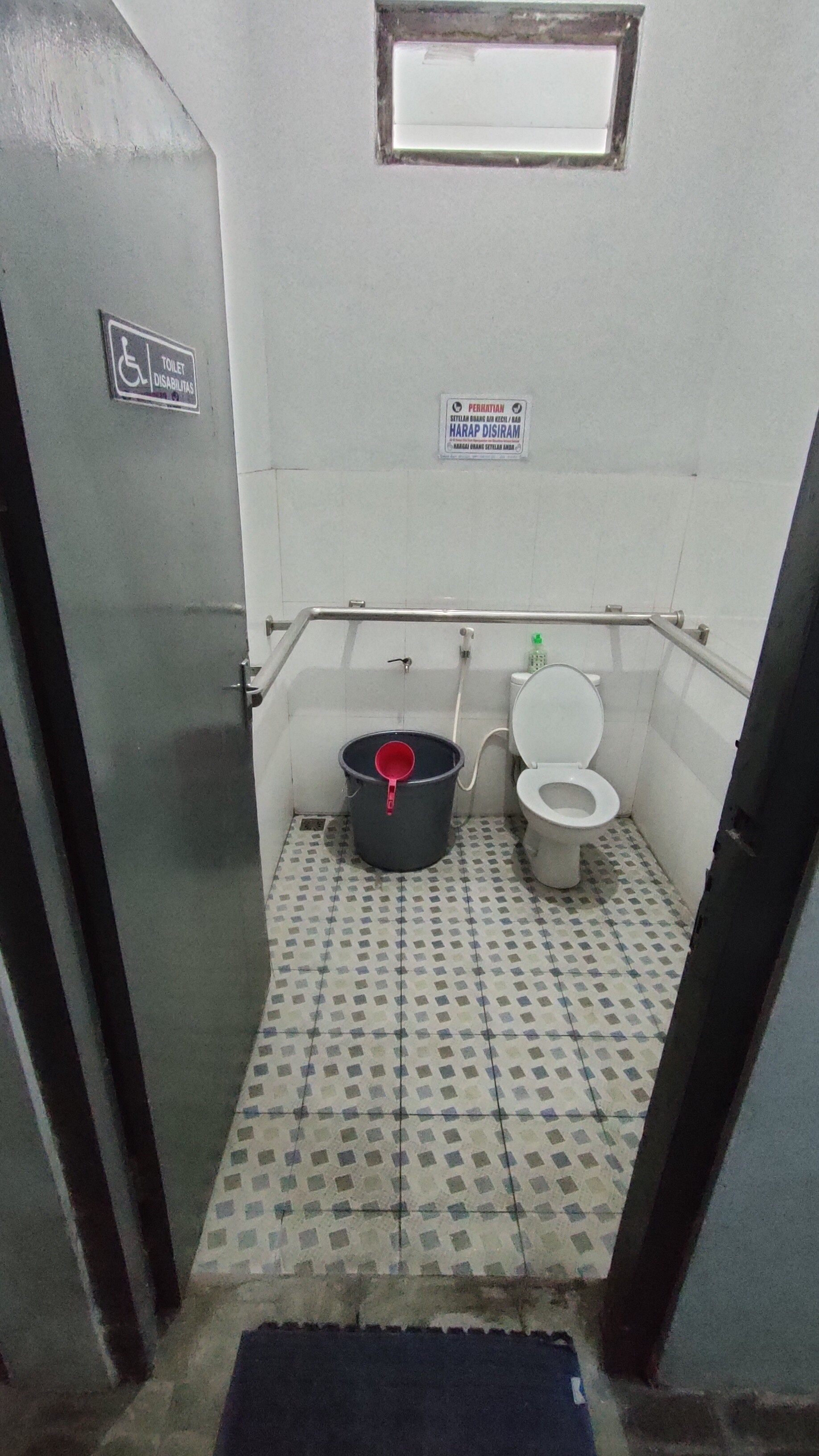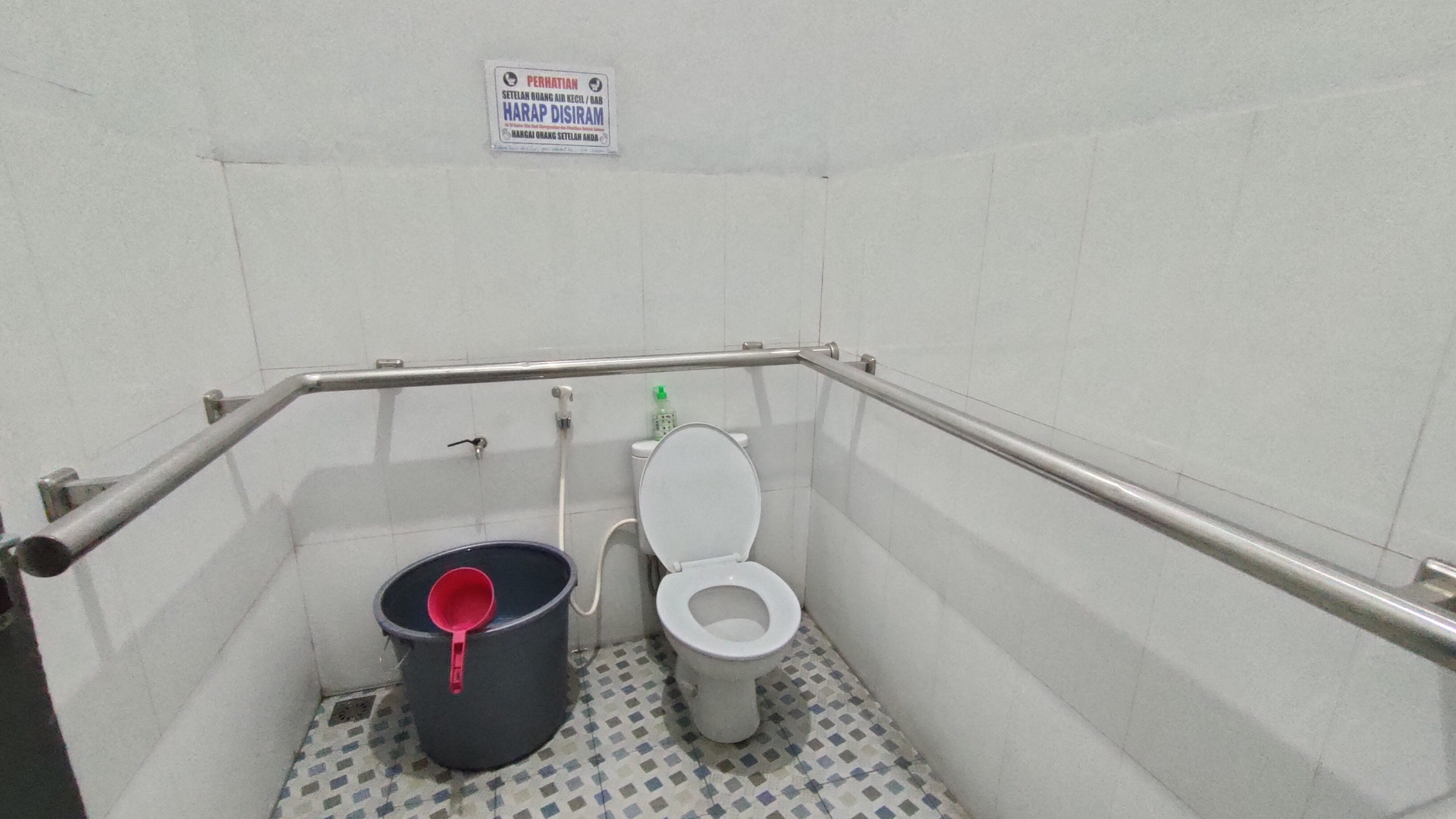 Toilet khusus untuk penyandang disabilitas dengan pegangan