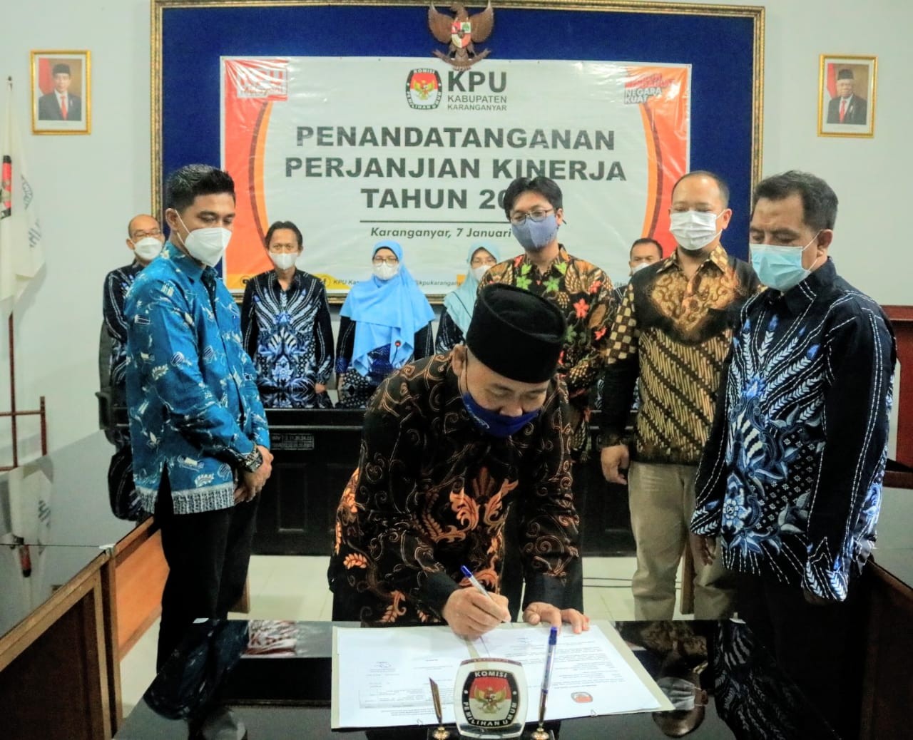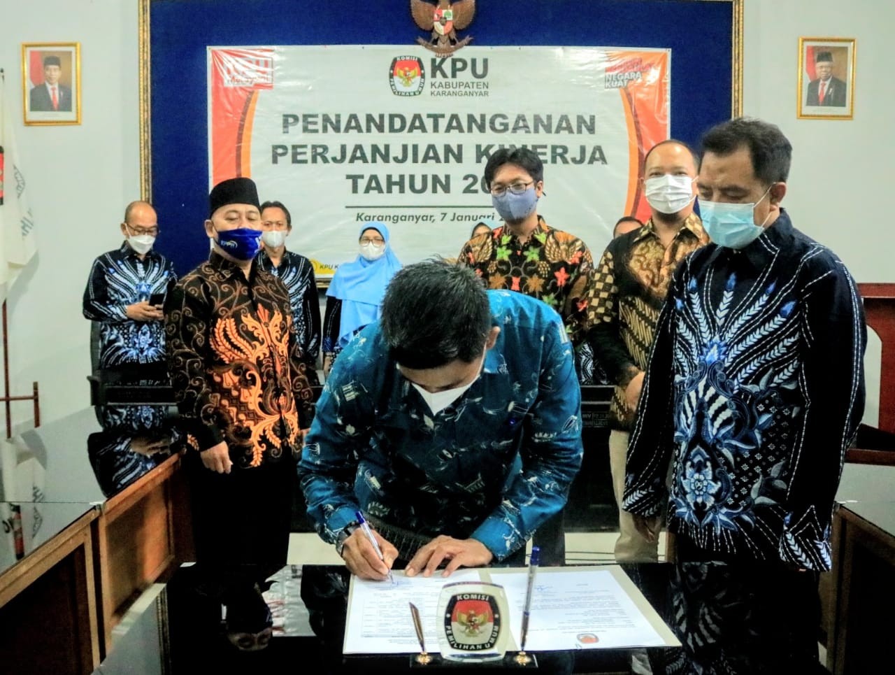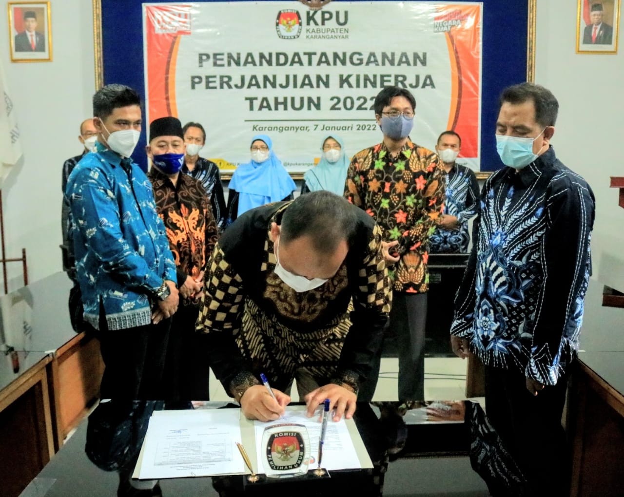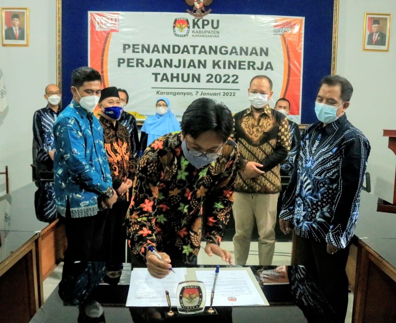 Awal Tahun 2022 KPU Karanganyar Teken PK