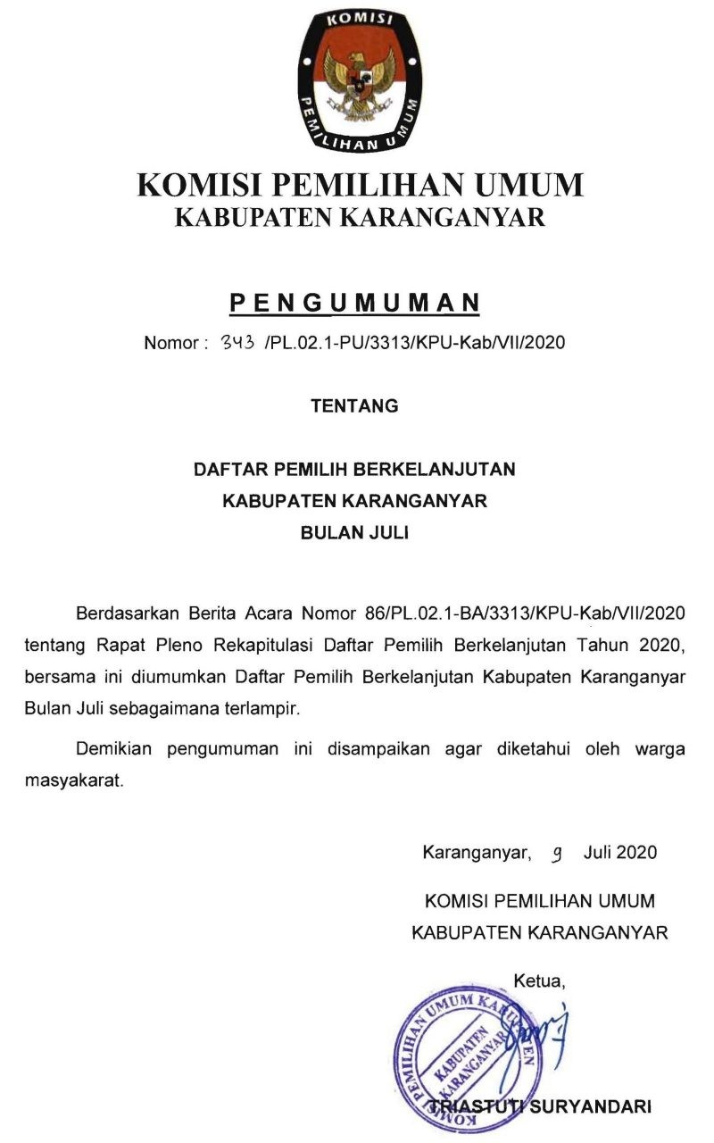 Berita Acara Rapat Pleno Rekapitulasi Daftar Pemilih Berkelanjutan Tahun 2020 (BULAN JULI)