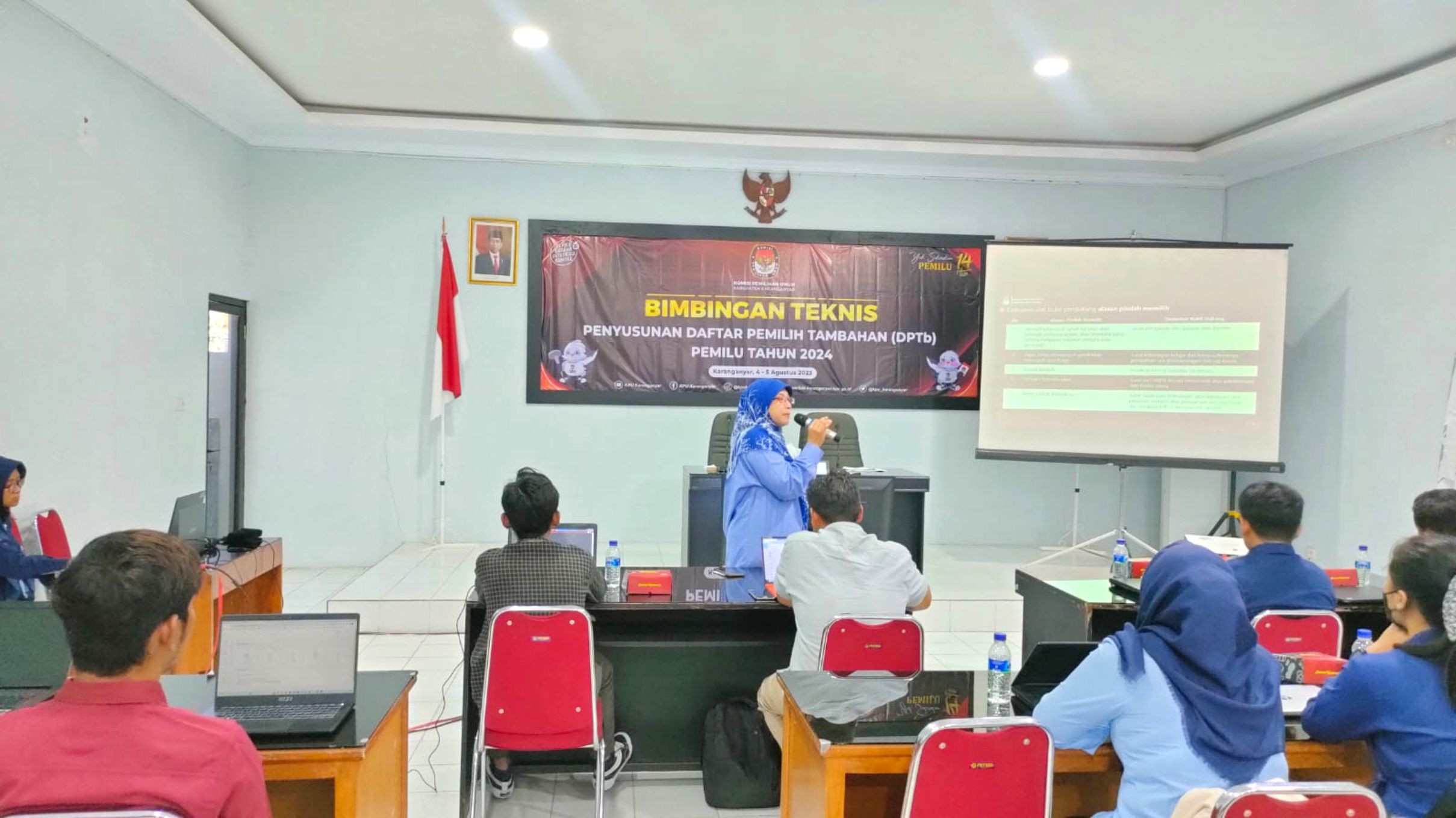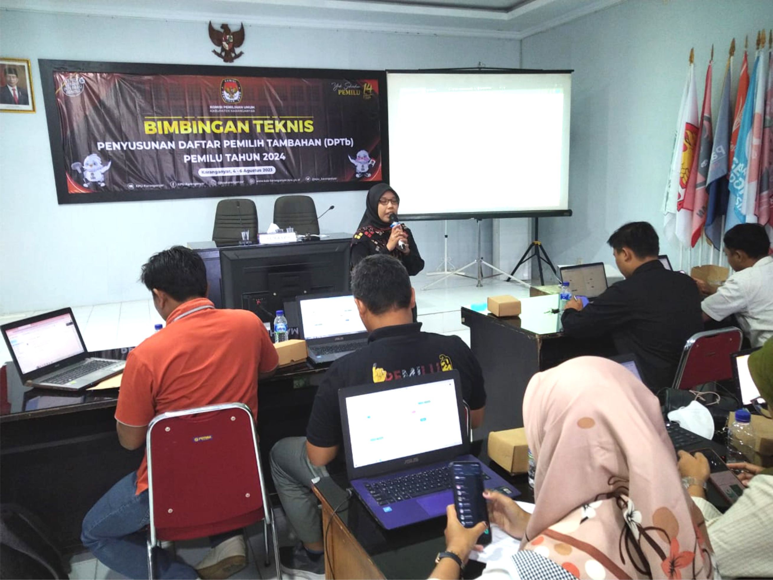 KPU Kabupaten Karanganyar Menyelenggarakan Bimbingan Teknis (Bimtek) Penyusunan Daftar Pemilih Tambahan (DPTb) Pemilu Tahun 2024 di Aula Kantor KPU Kabupaten Karanganyar dari Jumat, 4 Agustus hingga Minggu, 6 Agustus 2023.
