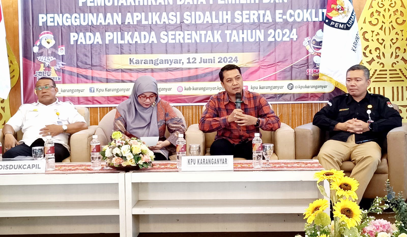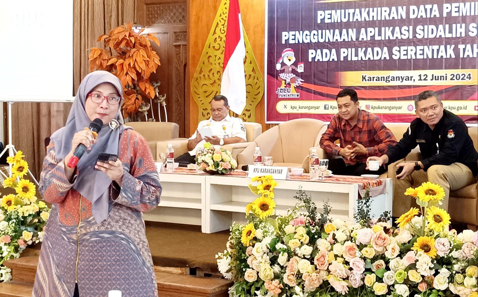 KPU Kabupaten Karanganyar selenggarakan Bimbingan Teknis Pemutakhiran Data Pemilih dan Penggunaan Aplikasi Sistem Informasi Data Pemilih (Sidalih) serta E-Coklit untuk Pemilihan Gubernur dan Wakil Gubernur, Bupati dan Wakil Bupati serta Walikota dan Wakil Walikota Tahun 2024 di Jawa Dwipa, Rabu (12/6/2024).