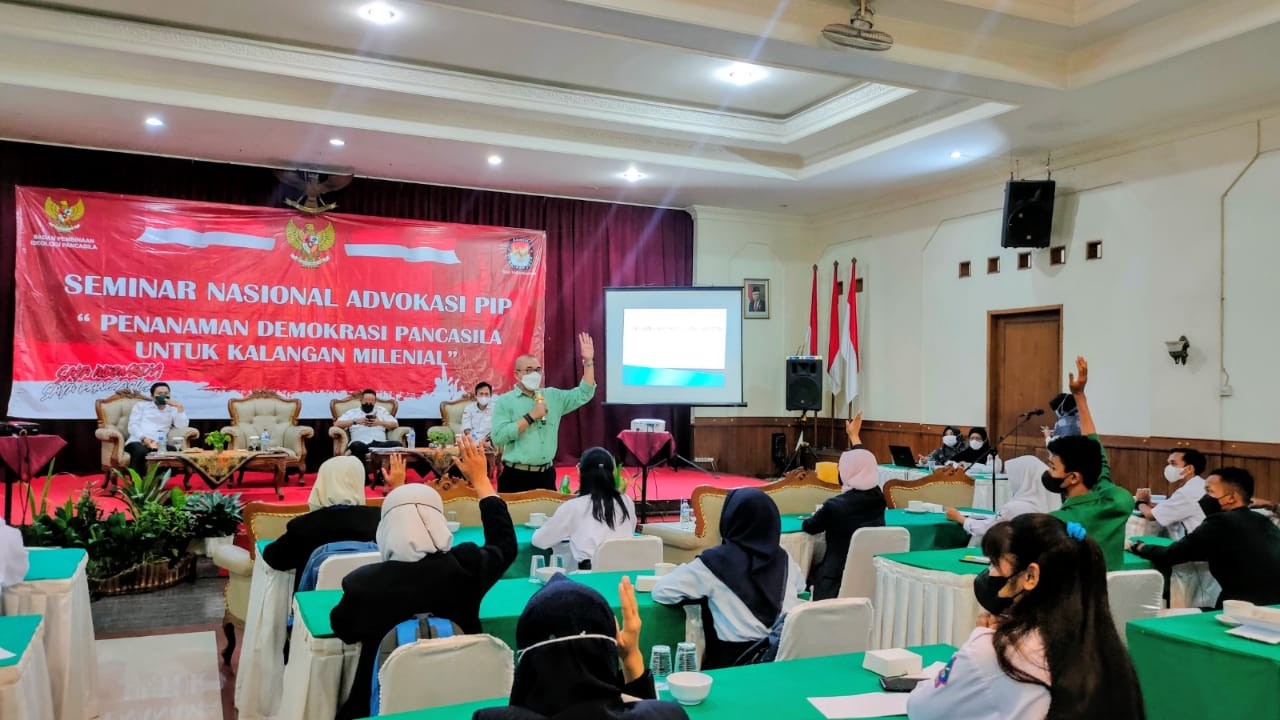 KARANGANYAR – Bertujuan menanamkan ideologi nilai-nilai Pancasila kepada kaum muda, KPU Karanganyar bersama Badan Pembinaan Ideologi Pancasila (BPIP) menggelar Seminar Nasional Advokasi Pembinaan Ideologi Pancasila bertajuk “Penanaman Demokrasi Pancasila untuk Kalangan Milenial” Rabu (02/03/2022) di Hotel Taman Sari Karanganyar.