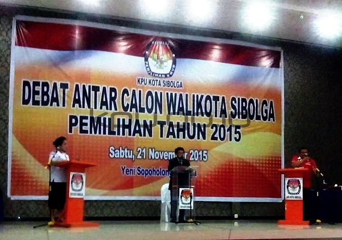 Sibolga, kpu.go.id-Pemilihan Kepala Daerah dan Wakil Kepala Daerah (Pilkada) Sibolga tinggal menghitung hari menuju 9 Desember 2015. Komisi Pemilihan Umum (KPU) Sibolga menggelar debat publik putaran tiga atau debat terakhir, menampilkan calon walikota yang akan bersaing pada pemungutan suara mendatang, yakni dari Pasangan MAJU Memori Eva Ulina Panggabean dengan M. Syarfi Hutauruk dari Pasangan SERASI. Bertempat di Aula Yenni Sopo Holong, Sabtu (21/11) malam, disaksikan langsung oleh 800-an warga Kota Sibolga, debat kali ini, berlangsung alot.