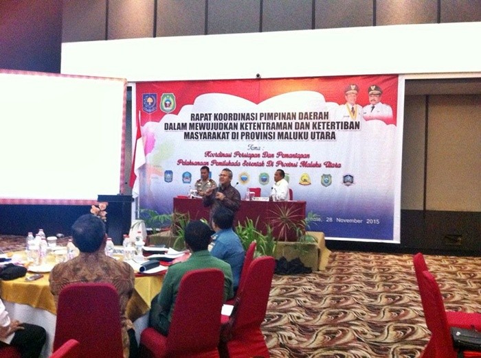 Malut, kpu.go.id – Komisioner Komisi Pemilihan Umum (KPU) RI, Arief Budiman saat menjadi narasumber terkait pelaksanaan Pilkada 2015 dalam acara Rapat Koordinasi Pimpinan Daerah Dalam Mewujudkan Ketenteraman dan Ketertiban Masyarakat Maluku Utara mengatakan bhwa demi transparansi penyelenggaraan Pemilihan Kepala Daerah (Pilkada) 2015 KPU memantabkan sistem informsi berbasis teknologi yng terintegritas, Sabtu (28/11).