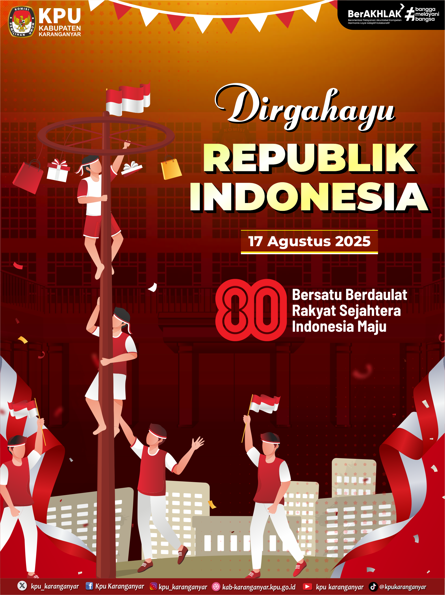 #TemanPemilih, Komisi Pemilihan Umum Kabupaten Karanganyar mengucapkan DIRGAHAYU REPUBLIK INDONESIA, 17 Agustus 2025.
