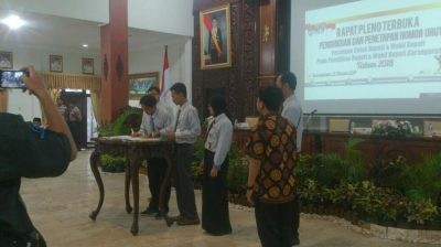 Hasil pengundian nomor urut tersebut disahkan oleh Ketua dan Anggota KPU Kabupaten Karanganyar ditandai dengan penandatanganan Berita Acara Rapat Pleno Terbuka Penetapan Nomor Urut Pasangan Calon Bupati dan Wakil Bupati Pada Pemilihan Bupati dan Wakil Bupati Karanganyar Tahun 2018 Nomor 101/PL.03.3.BA/3313/KPU-Kab/II/2018 dan Surat Keputusan Nomor 34/PL.03.3-Kpt/3313/KPU-Kab/II/2018 tentang Penetapan Nomor Urut Pasangan Calon Bupati dan Wakil Bupati Pada Pemilihan Bupati dan Wakil Bupati Karanganyar Tahun 2018. (Tfc)