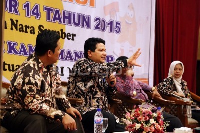 Blitar, kpu.go.id Hal tersebut ditegaskan oleh Ketua Komisi Pemilihan Umum (KPU) RI, Husni Kamil Manik ketika menjadi pembicara dalam Acara Sosialisasi Peraturan KPU Nomor 14 Tahun 2015 tentang Pemilihan Gubernur dan Wakil Gubernur, Bupati dan Wakil Bupati, dan/atau Walikota dan Wakil Walikota, Rabu (4/10) di Blitar. Dihadapan ratusan peserta yang memenuhi Ballroom Hotel Grand Mansion, Blitar tersebut Husni menjelaskan bahwa sering terjadi kesalahpahaman pemaknaan yang diakibatkan kekeliruan dalam penyebutan formulir C6.