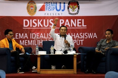 Jakarta kpu.go.id- Sigit Pamungkas, Komisioner KPU RI Divisi Pendidikan Pemilih mempertanyakan moralitas pemilih apabila memutuskan untuk Golput (tidak menggunakan hak pilih) dalam pemilu. Pertanyaan tersebut diajukan dalam kesempatan menjadi pembicara dalam Diskusi Panel: Dilema Idealisme Mahasiswa, Antara Memilih atau Golput, Kamis (29/10) di Ruang Seminar Kampus Universitas Jayabaya Jakarta. Dalam paparannya, Sigit mengajukan beberapa pertanyaan yang perlu dijawab oleh pemilih sebelum memutuskan untuk Golput. Pertanyaan pertama yang Sigit ajukan ialah apakah golput merupakan pilihan yang tepat dalam kondisi Indonesia kontemperer?