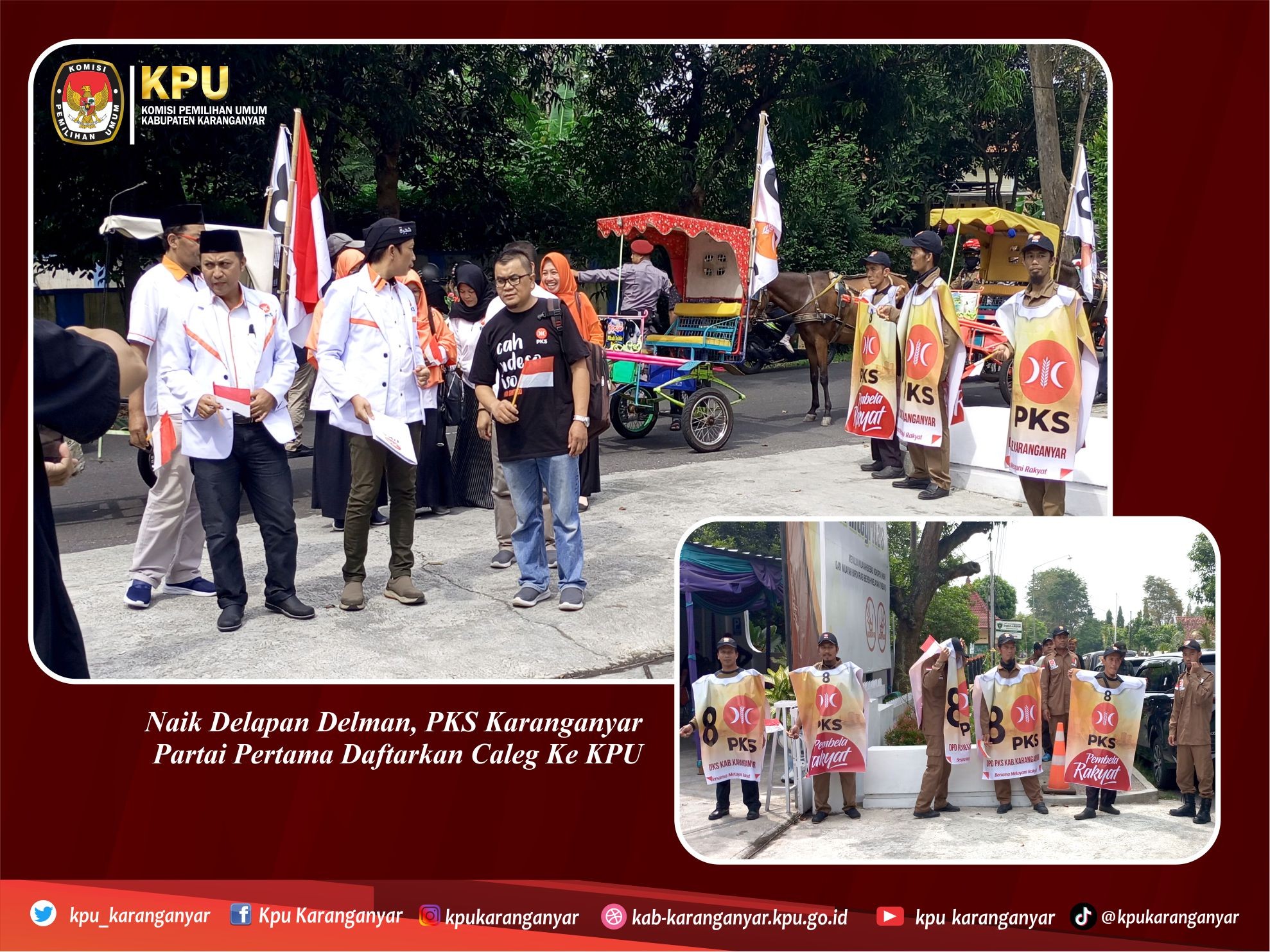 Hari ke-9 Partai Keadilan Sejahtera (PKS) Naik Delapan Delman dan Menjadi Pendaftar Pertama Bacaleg di KPU Kabupaten Karanganyar