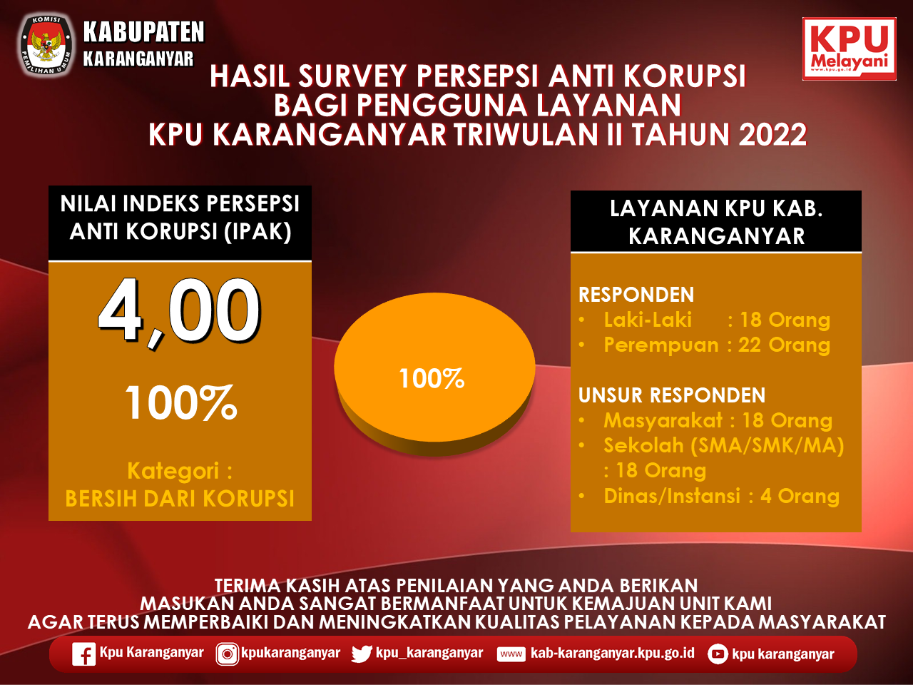 Hasil Survei Persepsi Anti Korupsi Bagi Pengguna Layanan KPU Kabupaten Karanganyar Triwulan II Tahun 2022