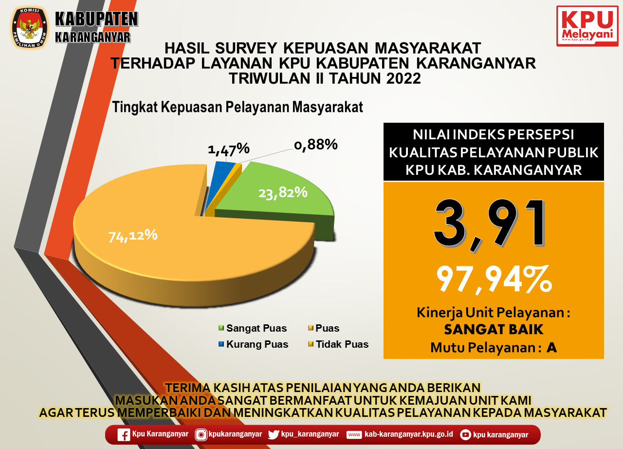 Hasil Survey Kepuasan Masyarakat Terhadap Layanan KPU Karanganyar Triwulan II Tahun 2022