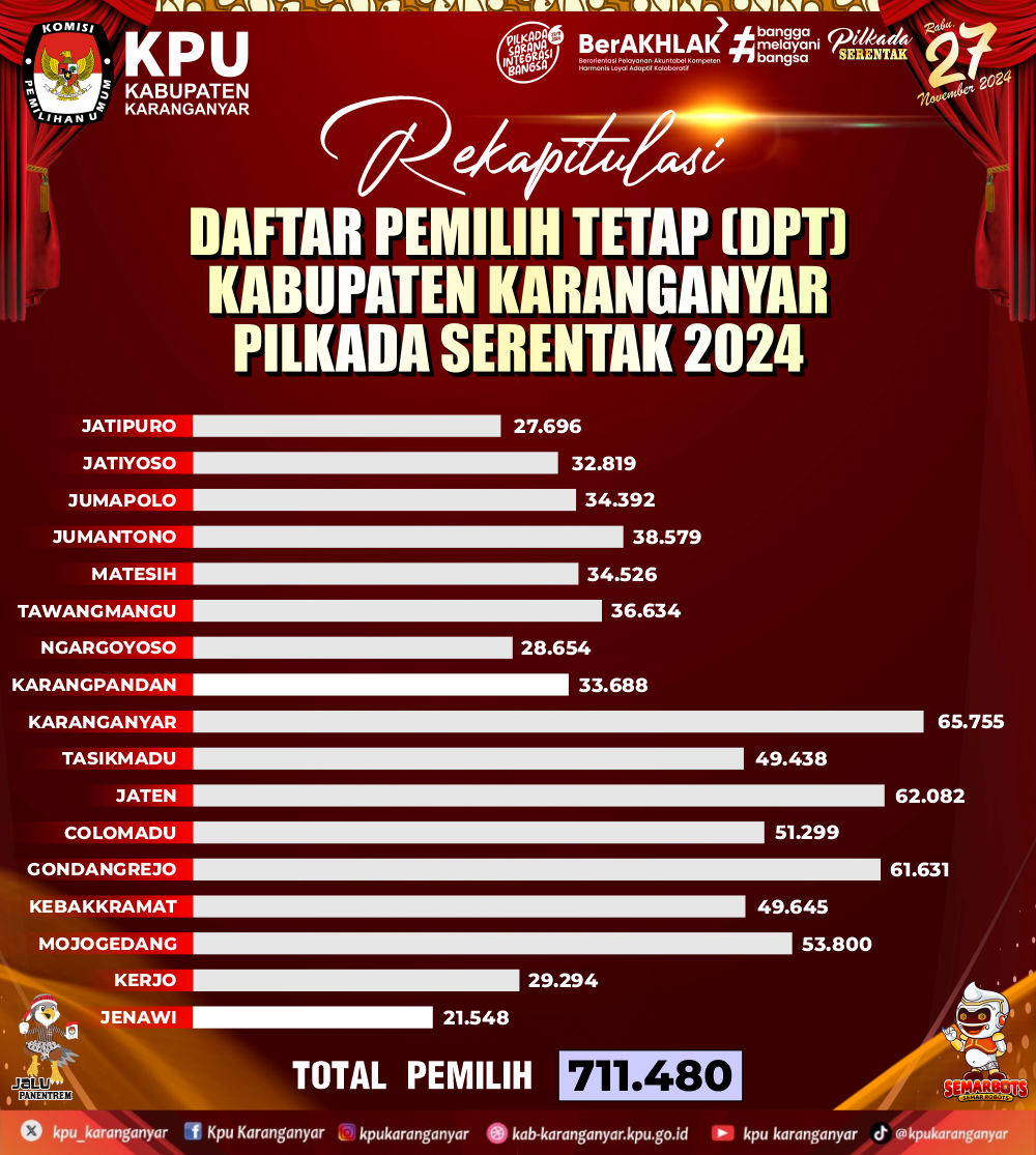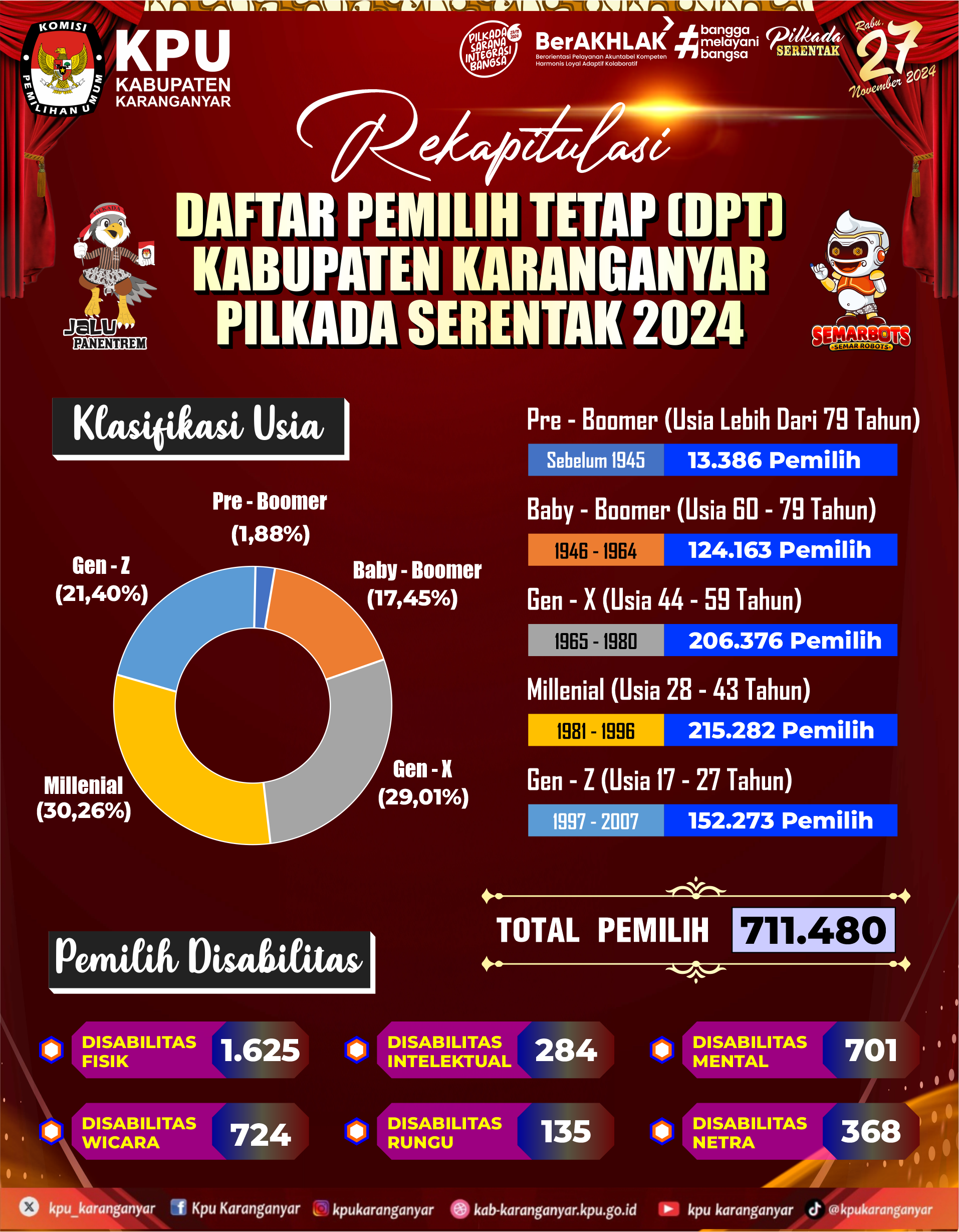 Infografis Rekapitulasi DPT Kabupaten Karanganyar pada Pilkada Serentak Tahun 2024