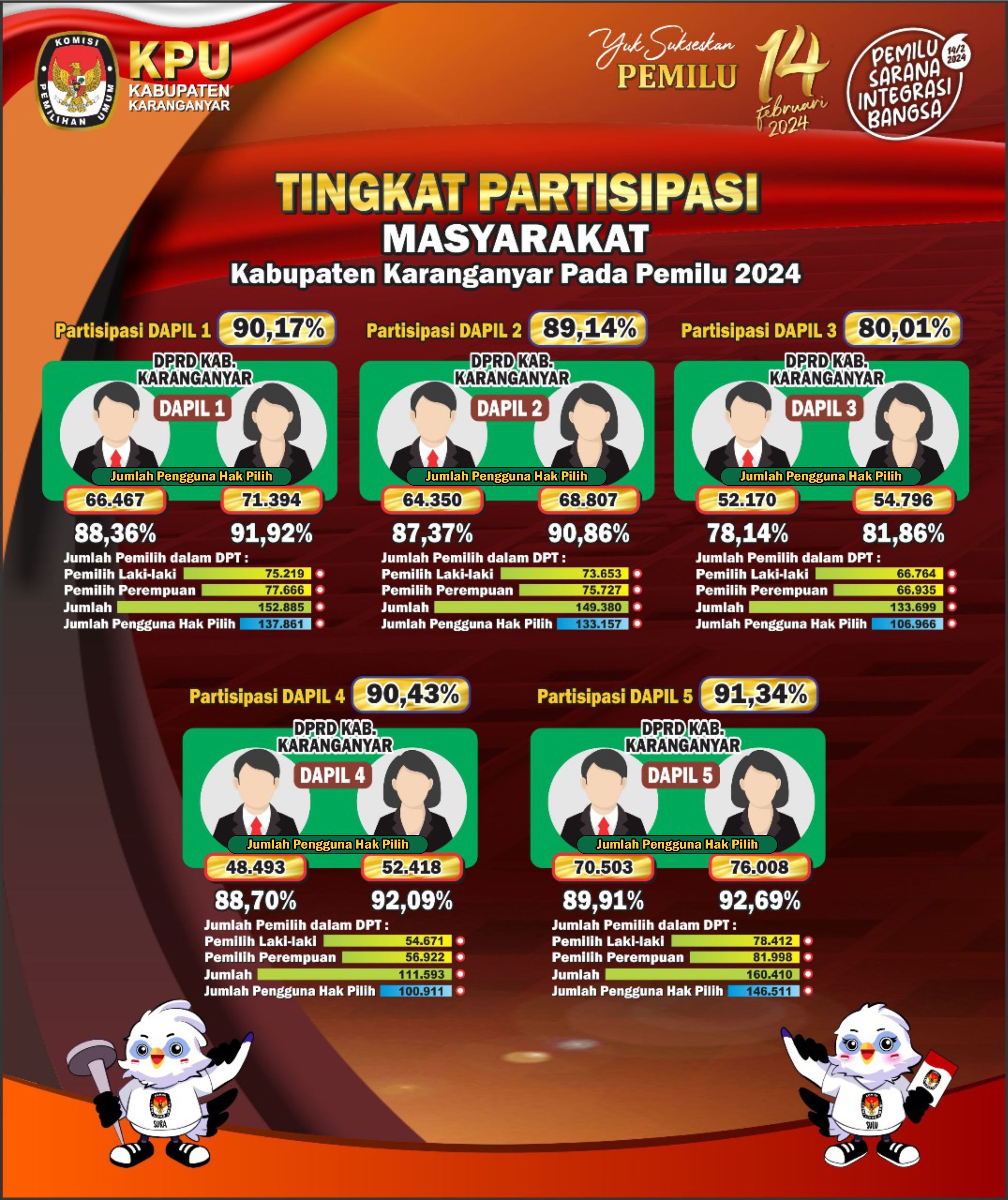infografis Tingkat Partisipasi Masyarakat Kabupaten Karanganyar pada Pemilu 2024