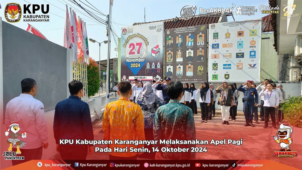 Mengawali Tugas Rutin sebagai Penyelenggara Pemilu, Senin (14/10/2024) Jajaran Sekretariat KPU Kabupaten Karanganyar melaksanakan Apel Pagi yang dipimpin oleh Anggota KPU Kabupaten Karanganyar, Devid Wahyuningtyas.