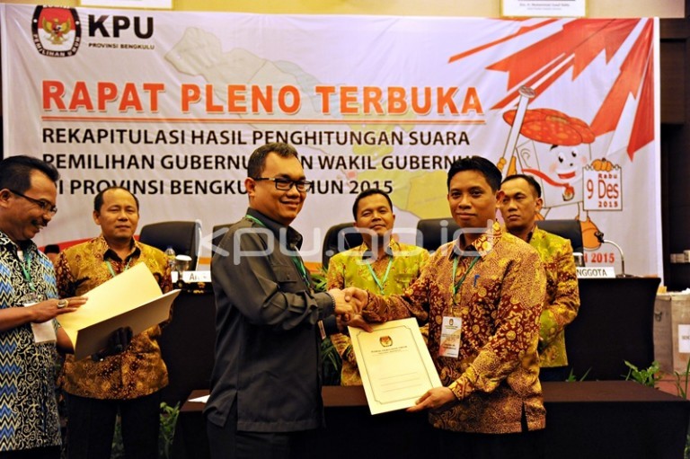 Hal itu disampaikannya di sela Pleno Rekapitulasi Penghitungan Suara Pemilihan Gubernur dan Wakil Gubernur Provinsi Bengkulu, Jumat (18/12) di Ballroom hotel santika, Bengkulu.