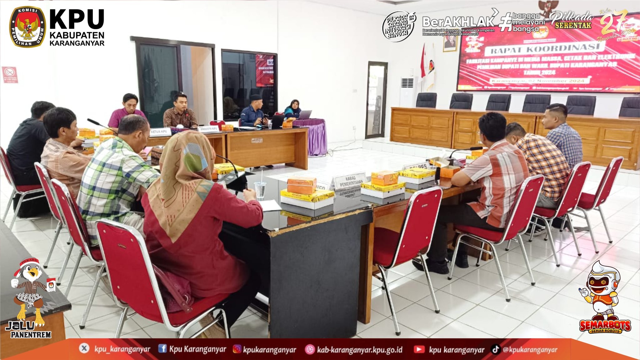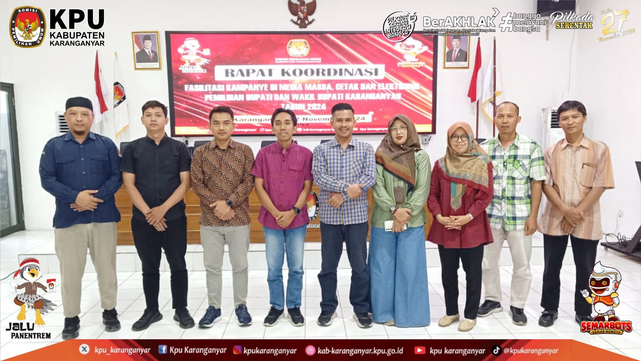 KPU Kabupaten Karanganyar Menggelar Rapat Koordinasi Fasilitasi Kampanye di Media Massa, Cetak dan Elektronik Pemilihan Bupati dan Wakil Bupati Karanganyar Tahun 2024 (Sabtu, 2 November 2024)