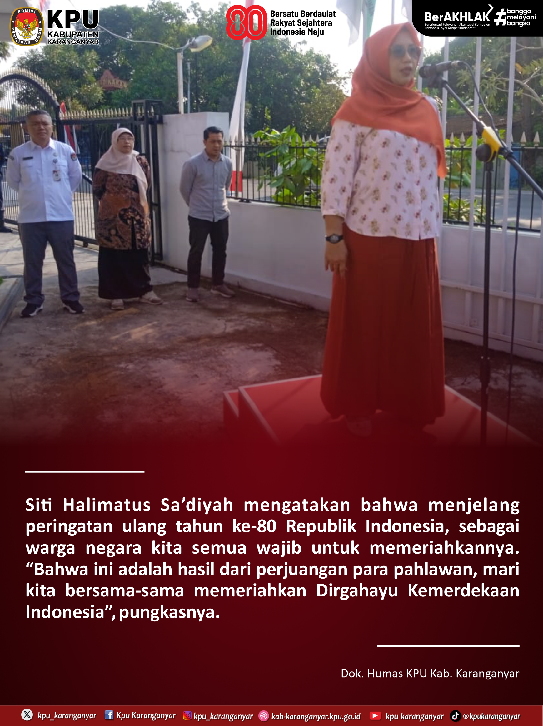 Siti Halimatus Sa’diyah mengatakan bahwa menjelang peringatan ulang tahun ke-80 Republik Indonesia, sebagai warga negara kita semua wajib untuk memeriahkannya.
