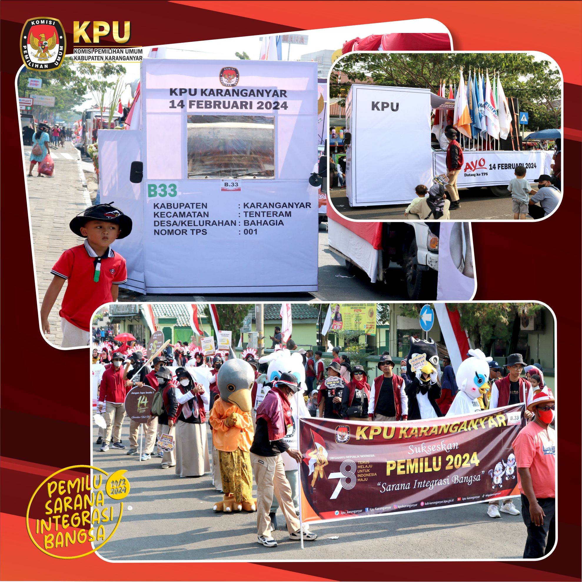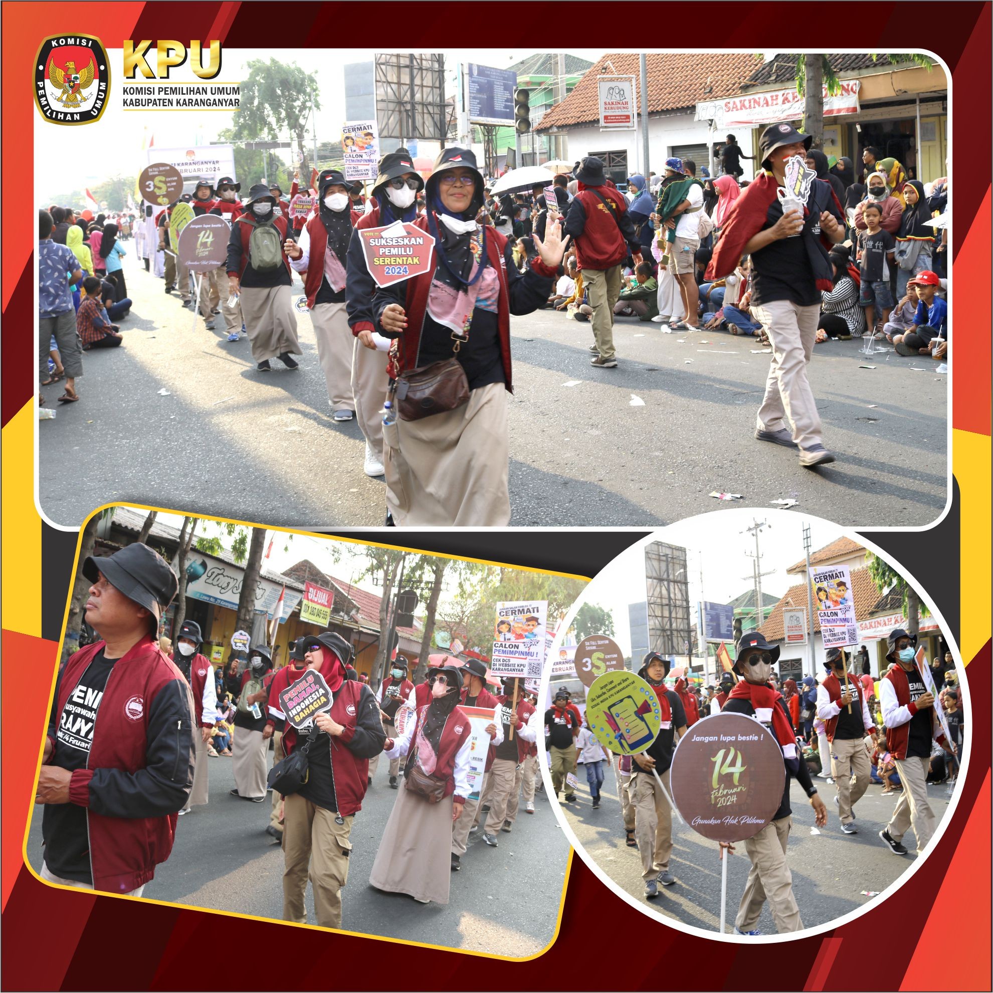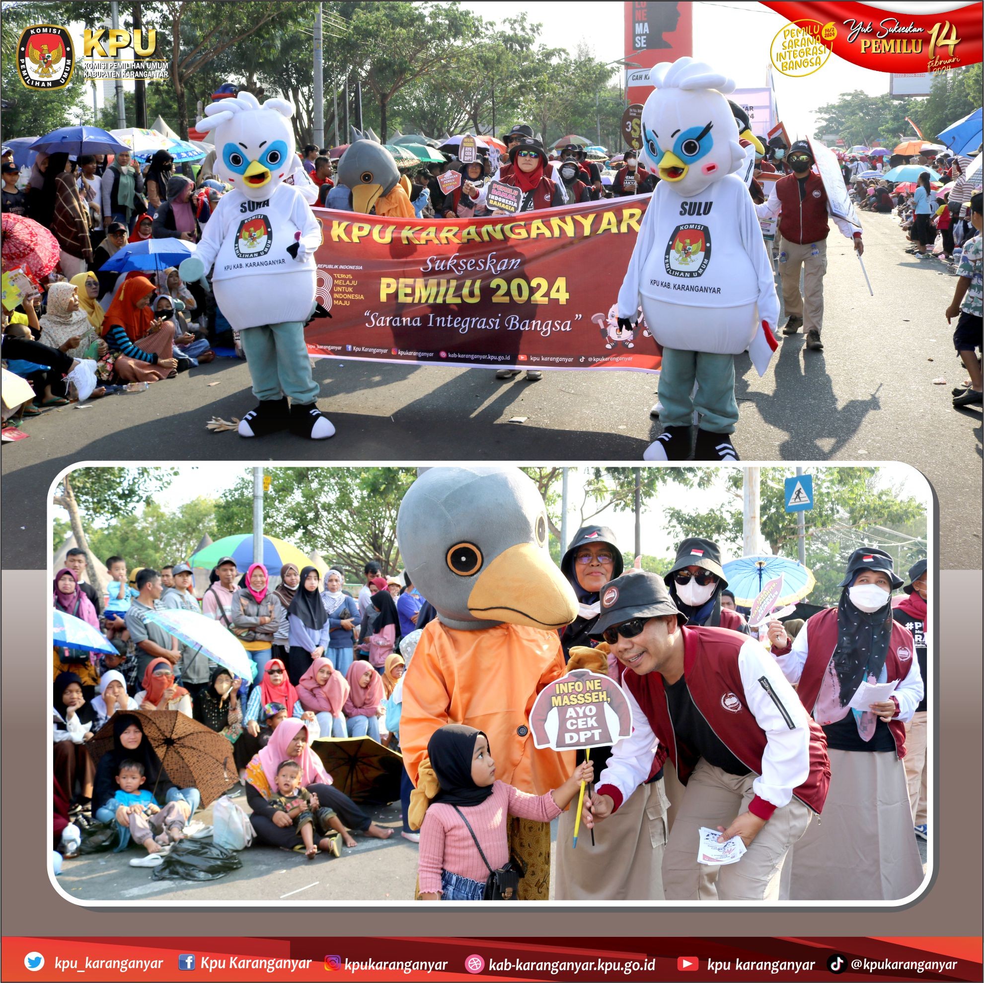 Dalam pesta karnaval tersebut, Maskot Pemilu 2024, Sura dan Sulu, dan maskot-maskot Pemilu yang lain turut serta berinteraksi dengan para penonton dari warga setempat. Dalam kesempatan tersebut, KPU Karanganyar mensosialkan Pemilu Serentak yang akan digelar tanggal 14 Februari 2024. Selain itu juga membagikan flyer ajakan Pemilu, tolak hoax Pemilu, dan slogan-slogan lainnya.