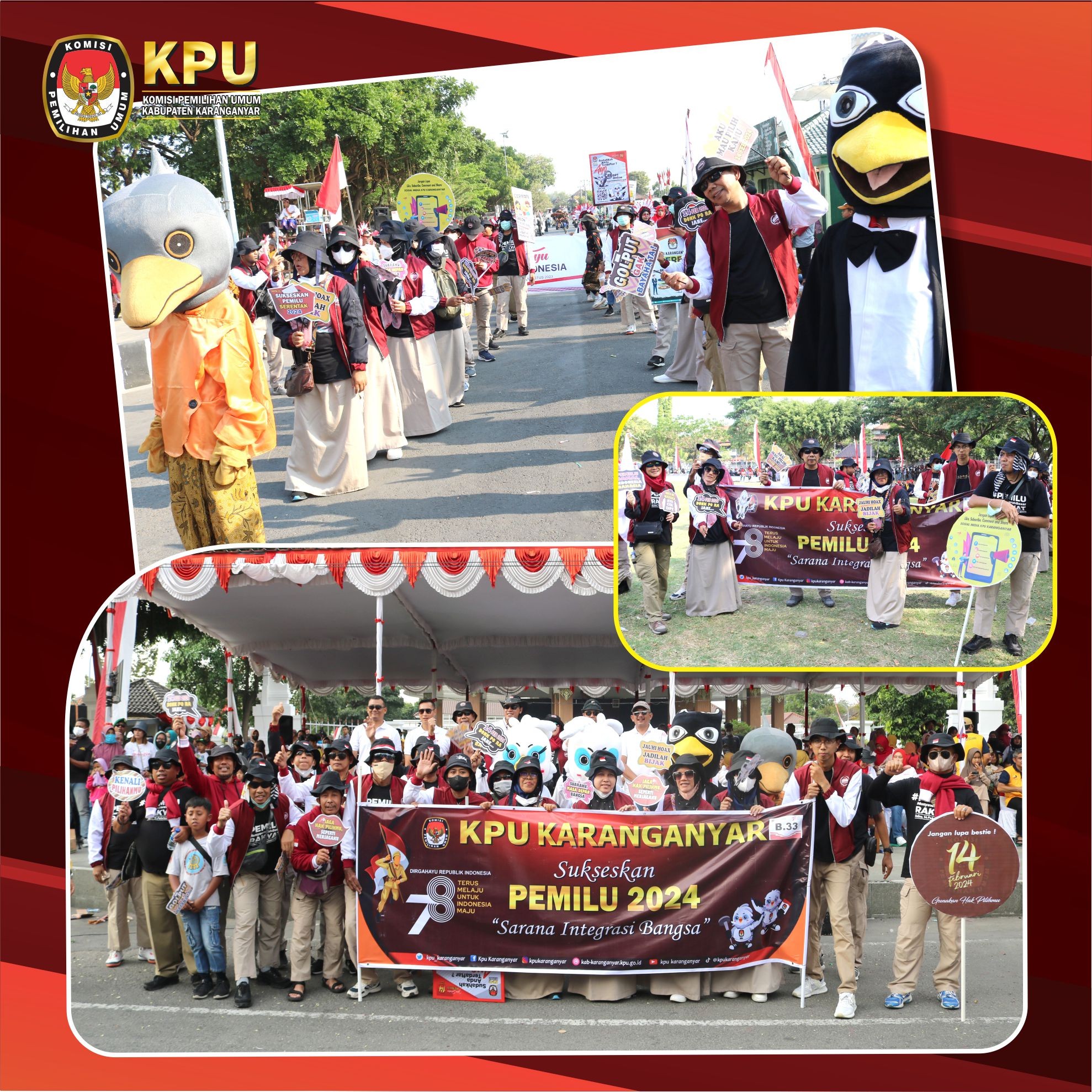 KPU Kabupaten Karanganyar turut berpartisipasi dalam Karnaval Pembangunan Karanganyar dalam rangka memeriahkan HUT RI Ke-78, Sabtu (19/08/2023).