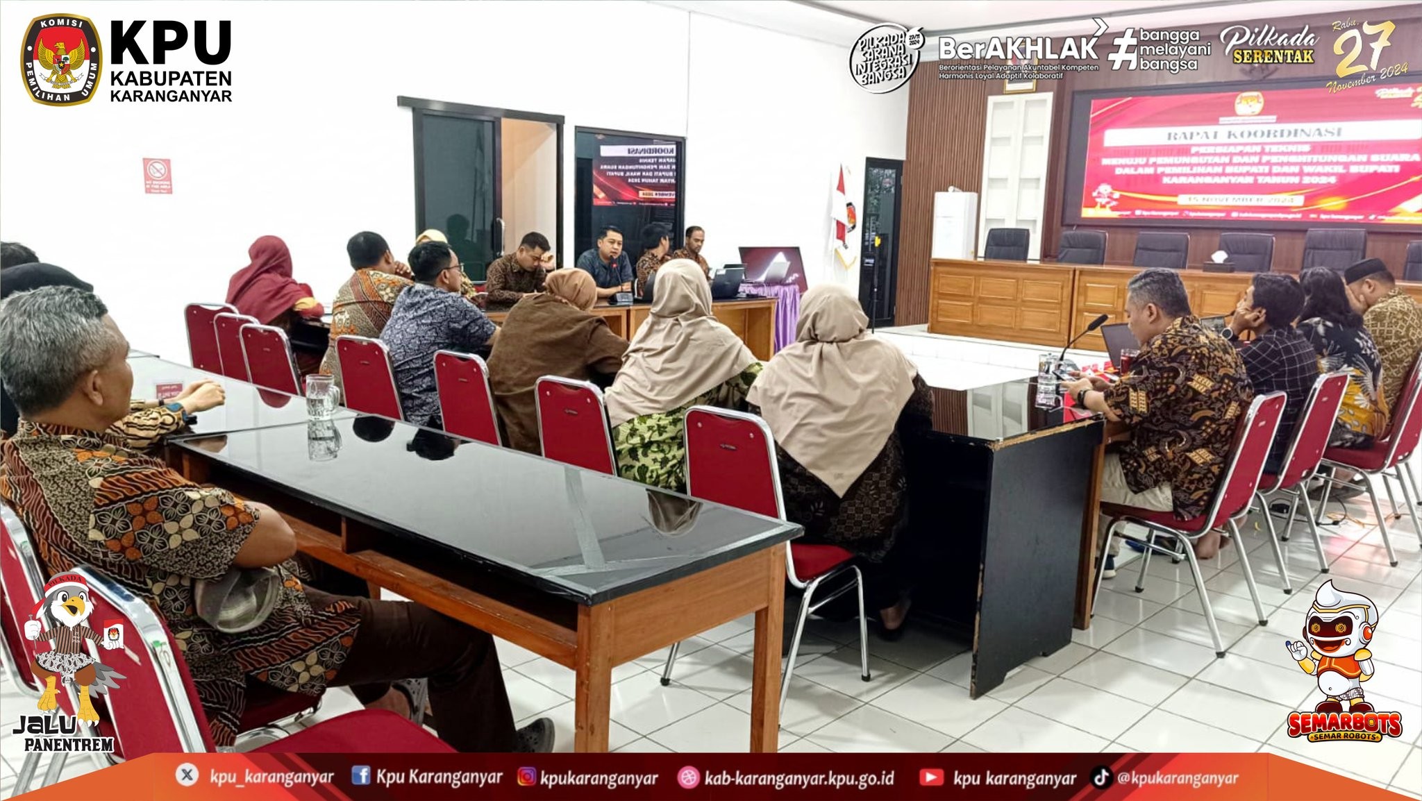 KPU Kabupaten Karanganyar Menggelar Rapat Koordinasi Persiapan Teknis Menuju Pemungutan dan Penghitungan Suara dalam Pemilihan Bupati dan Wakil Bupati Karanganyar Tahun 2024 (Jumat, 15 November 2024)