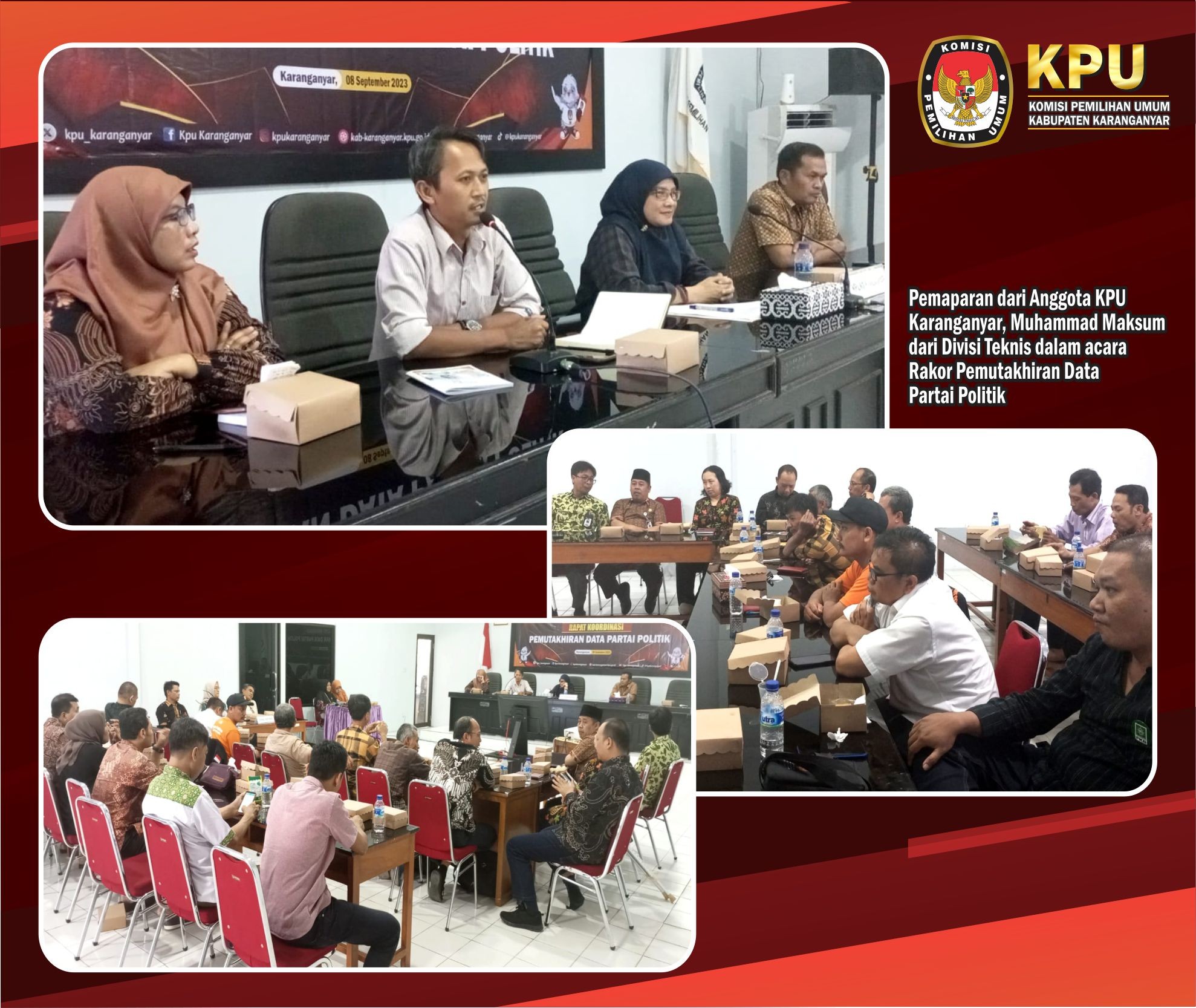 KPU Kabupaten Karanganyar menyelenggarakan Rapat Koordinasi Pemutakhiran Data Partai Politik, bertempat di Aula KPU Karanganyar, Jumat (08/09/2023).