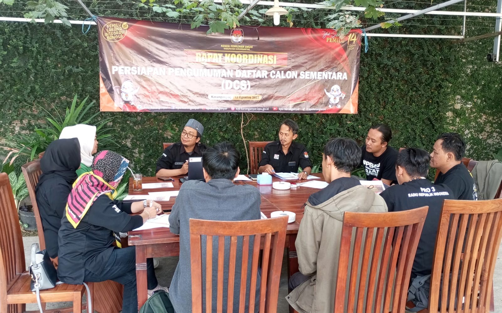 KPU Kabupaten Karanganyar menyelenggarakan Rapat Koordinasi Persiapan Pengumuman Daftar Calon Sementara (DCS) (Karanganyar, 13 Agustus 2023).