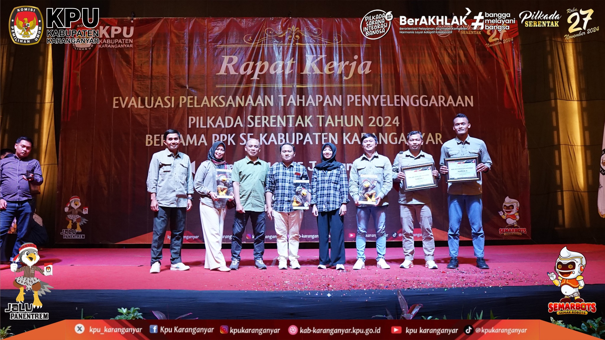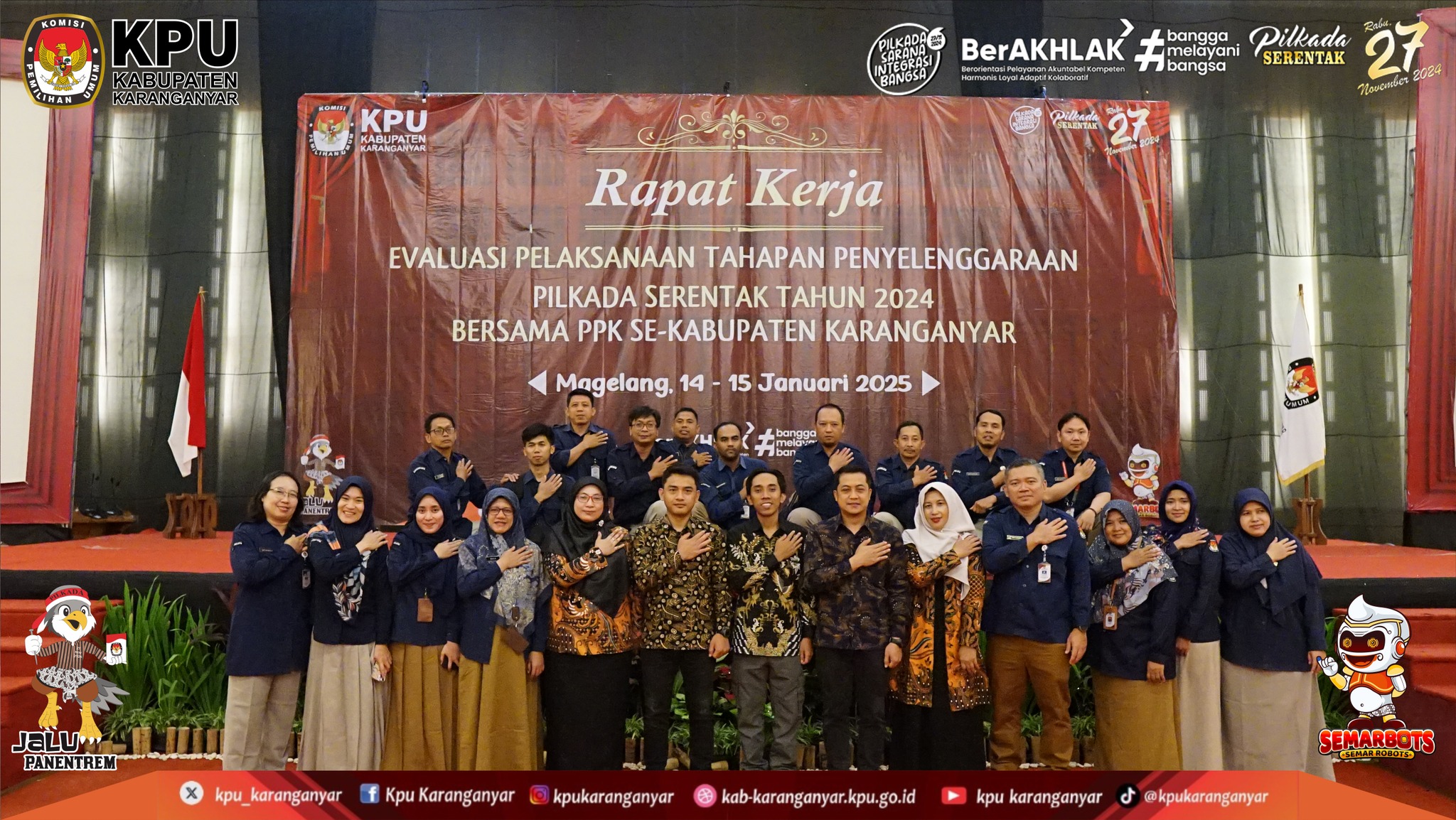 KPU Kabupaten Karanganyar Selenggarakan Rapat Kerja Evaluasi Pelaksanaan Tahapan Penyelenggaraan Pilkada Serentak Tahun 2024 Bersama PPK se-Kabupaten Karanganyar, (Selasa - Rabu, 14 - 15 Januari 2025)