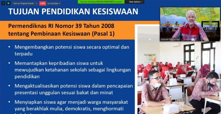 Demikian dikatakan Ganjar yang menjadi keynote speaker pada Diskusi Kepemudaan menyambut peringatan Hari Sumpah Pemuda (HSP) dengan tema Eksistensi OSIS dalam Pendidikan Karakter dan Demokrasi di Masa Pandemi yang diadakan KPU Kabupaten Karanganyar melalui Zoom Meeting, Selasa (27/10/2020).