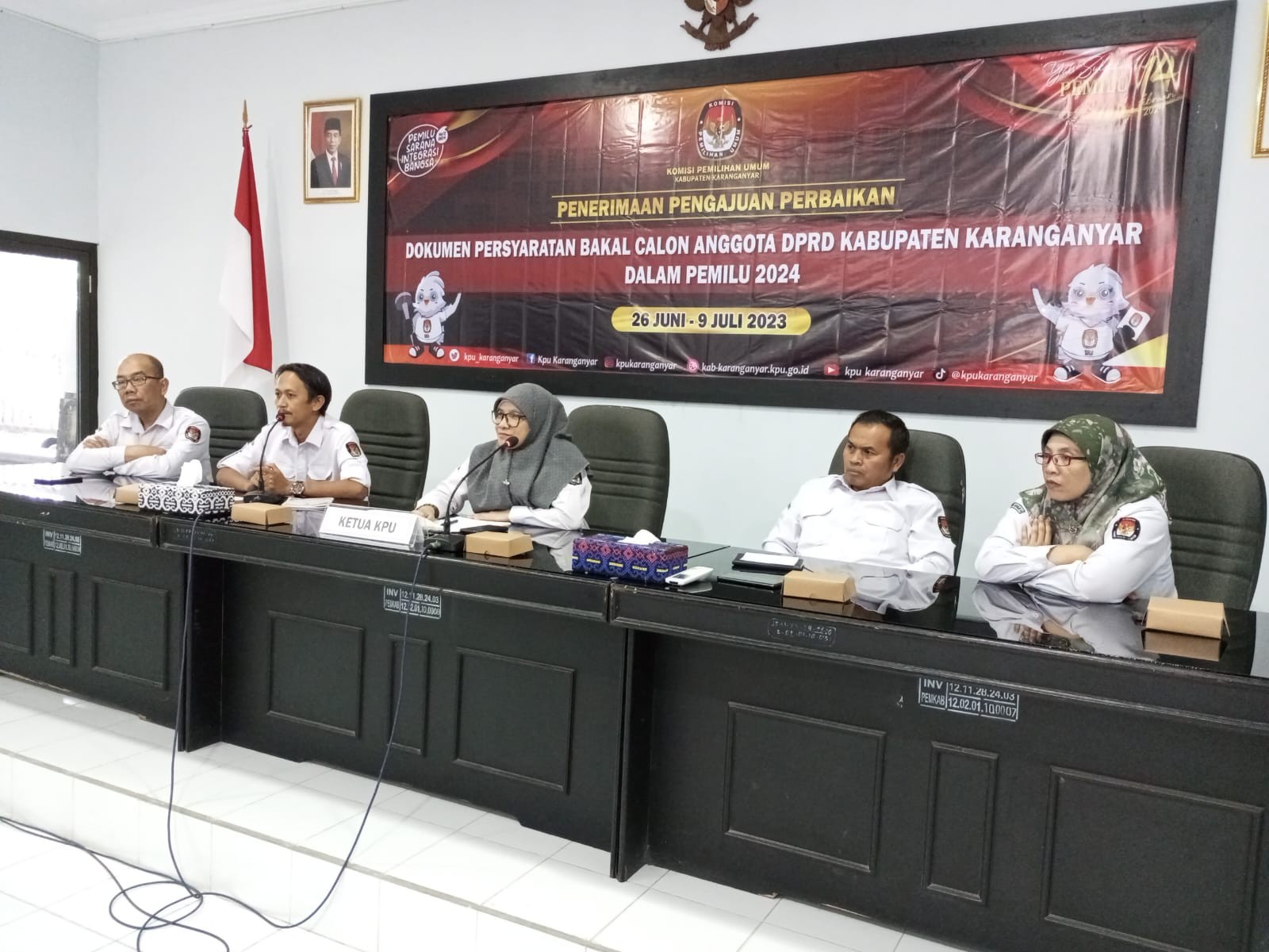 Selanjutnya KPU Karanganyar akan melakukan penelitian berkas pengajuan perbaikan dokumen bacaleg yang akan dilaksanakan pada saat verifikasi administrasi perbaikan mulai tanggal 10 Juli hingga 9 Agustus 2023. (AB)
