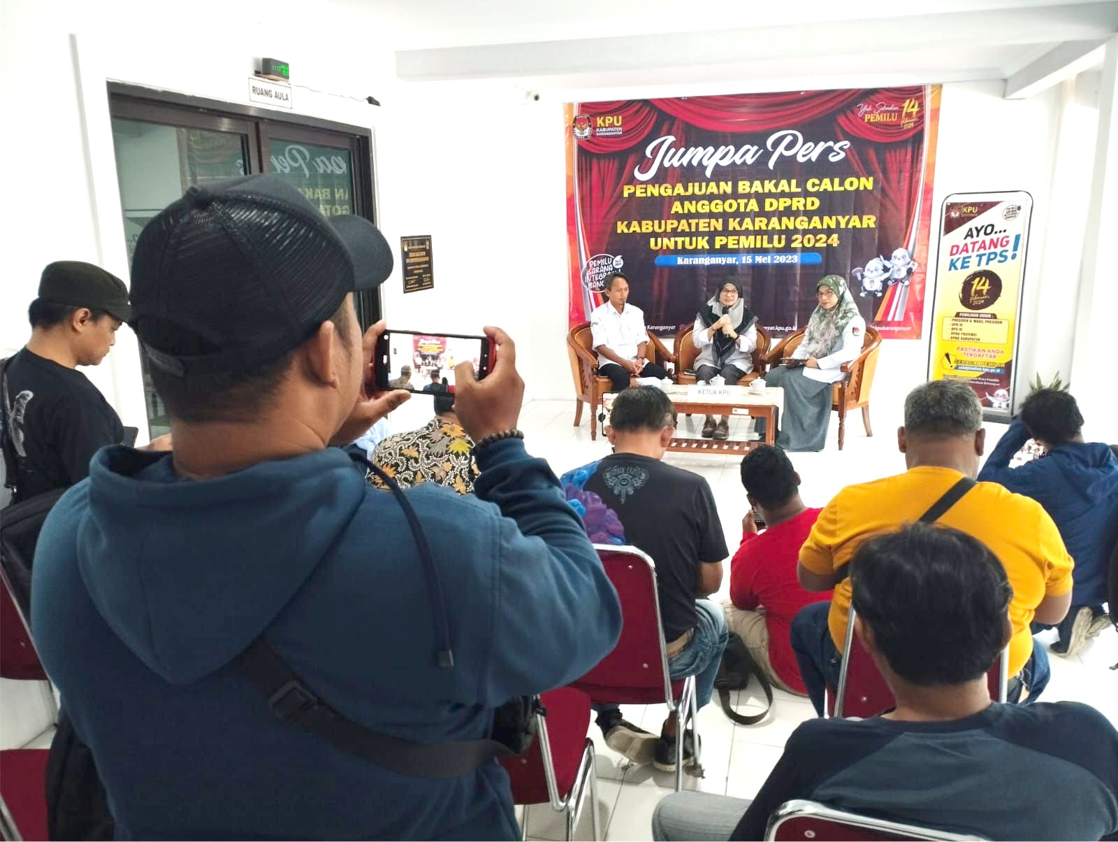KPU Karanganyar Gelar Jumpa Pers Pengajuan Bakal Calon Anggota DPRD Kabupaten Karanganyar Pemilu 2024, Senin (15/5/2023).