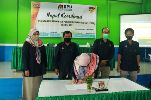 Triastuti Suryandari, Ketua KPU Karanganyar, mengatakan bahwa berdasarkan UU Nomor 7 Tahun 2017 tentang Pemilihan Umum Pasal 20 huruf I diatur bahwa KPU Kabupaten/Kota berkewajiban melakukan pemutakhiran dan memelihara Data Pemilih secara berkelanjutan dengan memperhatikan data kependudukan. Maka dari itu, lanjut Trias, KPU Karanganyar secara rutin melaksanakan PDPB setiap bulan.