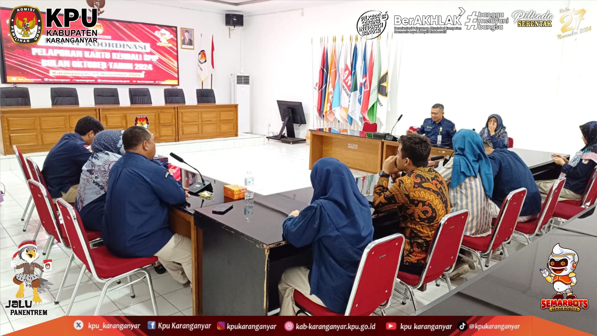 KPU Kabupaten Karanganyar Menggelar Rapat Koordinasi Pelaporan Kartu Kendali SPIP Bulan Oktober Tahun 2024 (Selasa, 5 November 2024)