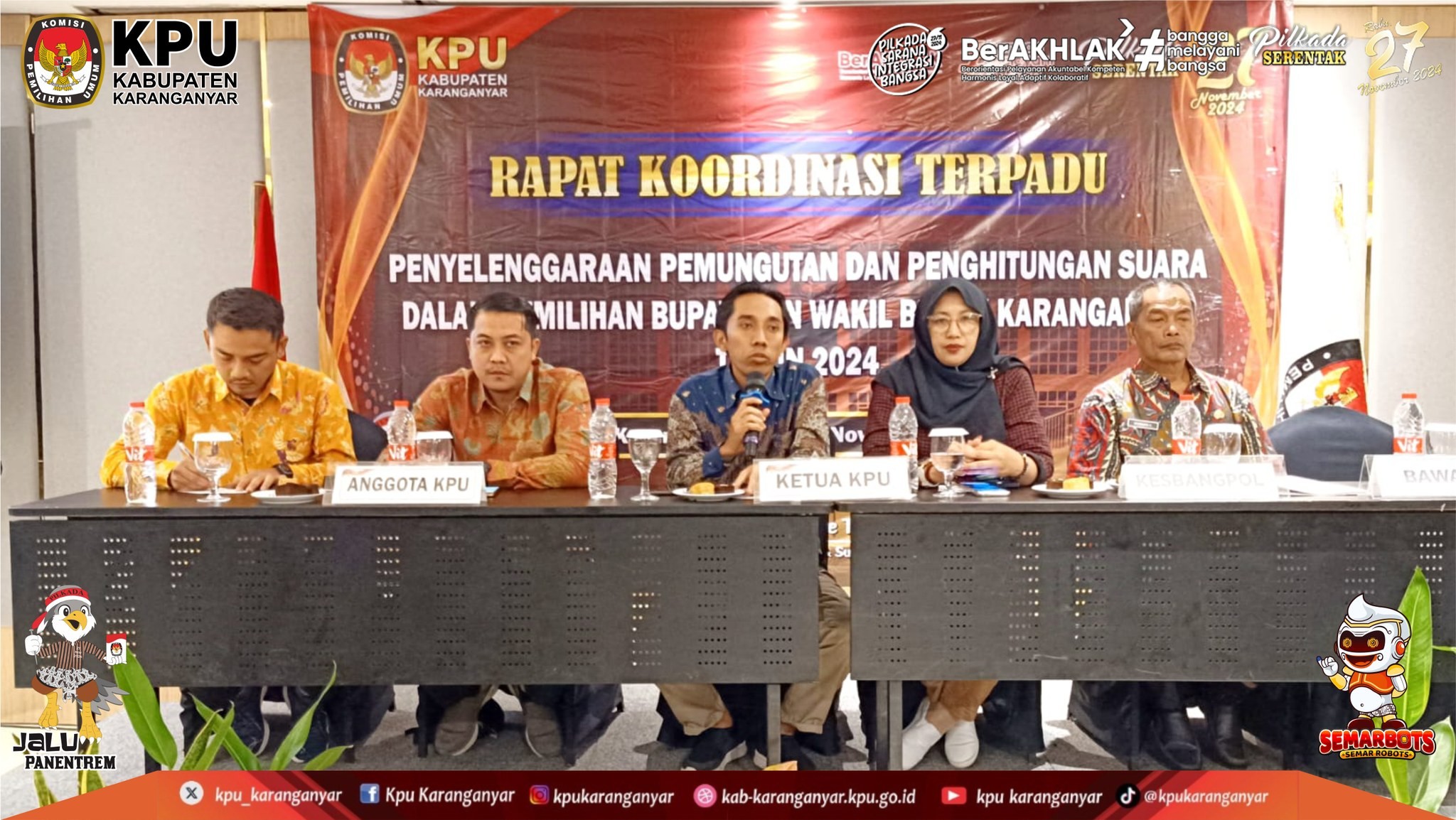 KPU Kabupaten Karanganyar Melaksanakan Rapat Koordinasi Terpadu Penyelenggaraan Pemungutan dan Penghitungan Suara dalam Pemilihan Bupati dan Wakil Bupati Karanganyar Tahun 2024 (Selasa - Rabu, 19 - 20 November 2024)