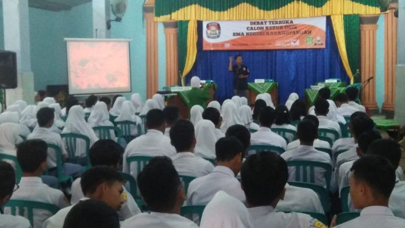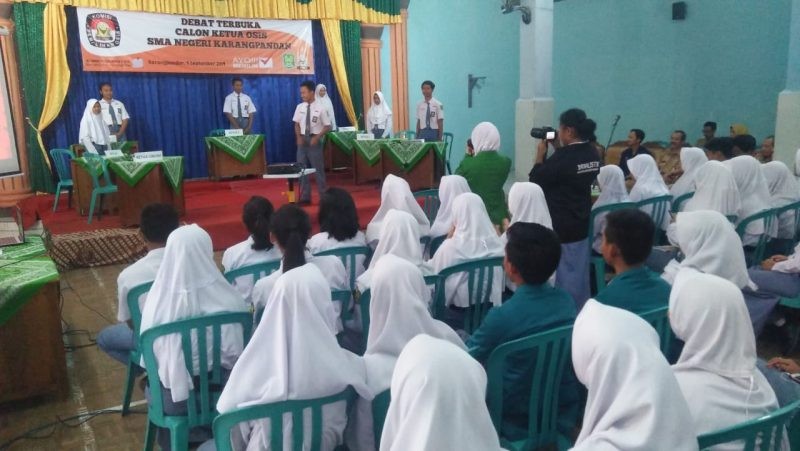 KPU Kabupaten Karanganyar menghadiri Debat Kandidat Ketua Osis yang digelar oleh SMA Negeri Karangpandan periode 2019/2020.