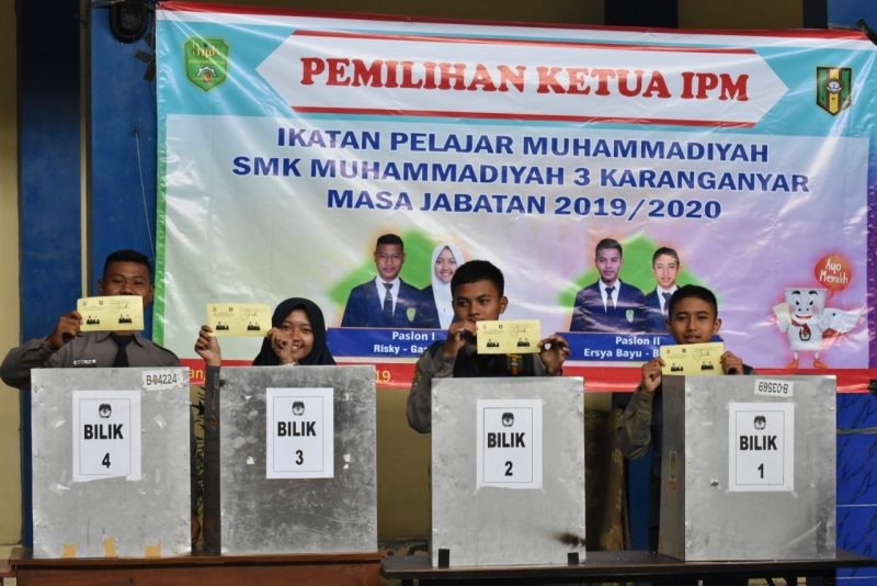 KPU Kabupaten Karanganyar menghadiri Pemilihan Ketua Ikatan Pelajar Muhammadiyah SMK Muhammadiyah 3 Karanganyar masa jabatan 2019/2020.