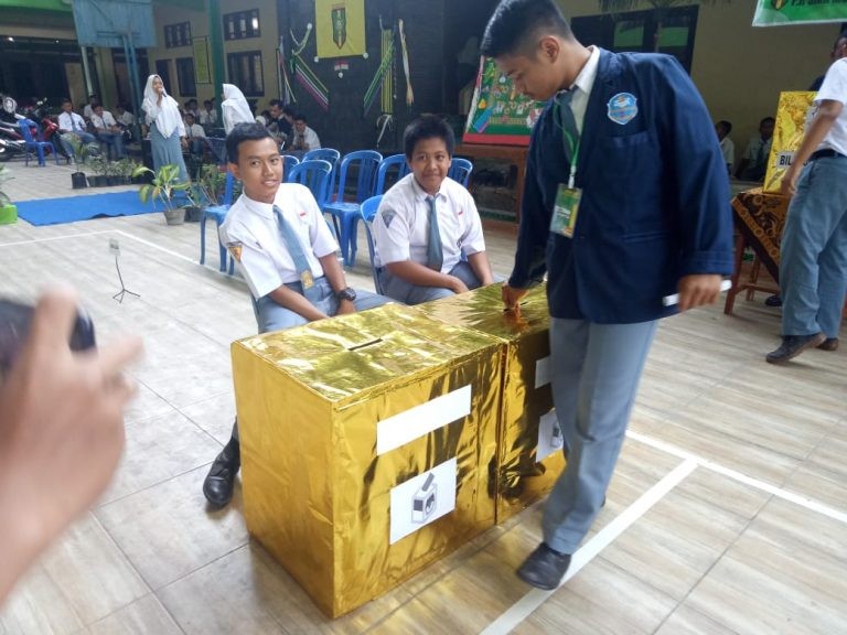 KPU Kabupaten Karanganyar menghadiri Pemilihan Ketua IPM Tahun 2019 yang digelar oleh SMK Muhammadiyah 1 Gondangrejo, 14 Oktober 2019.