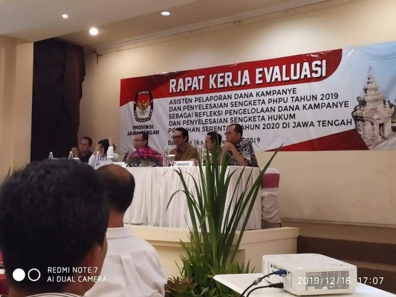 Rapat Kerja Evaluasi Asistensi Pelaporan Dana Kampanye dan Penyelesaian Sengketa Perselisihan Hasil Pemilu (PHPU) Tahun 2019 dihadiri oleh 35 (tiga puluh lima) Kabupaten/Kota Se Jawa Tengah.