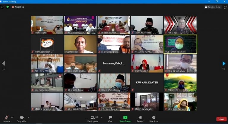 KARANGANYAR – Komisi Pemilihan Umum (KPU) Kabupaten Karanganyar mengikuti Bimbingan Teknis (Bimtek) Pembentukan dan Pengelolaan Website Jaringan Dokumentasi dan Informasi Hukum (JDIH) dalam jaringan (daring) melalui Zoom Meeting, Kamis (01/10/2020). Kegiatan yang dilaksanakan oleh KPU Provinsi Jawa Tengah tersebut menghadirikan narasumber Kepala Biro Hukum KPU RI, Sigit Joyo Wardono, dan Kepala bagian JDIH KPU RI, Iswantoro.