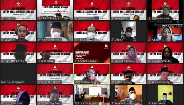KARANGANYAR – KPU Karanganyar mengikuti Doa dan Dzikir Bersama Untuk Keselamatan Bangsa yang dilaksanakan KPU Provinsi Jawa Tengah secara virtual melalu daring zoom meeting, Jum’at (16/07/2021). Acara Doa dan Dzikir Bersama diisi Doa yang dipandu secara bergantian oleh Ketua MUI Provinsi Jawa Tengah, Dr. KH. Ahmad Darodji, M.Si dan Vikjend Keuskupan Agung Semarang, Romo Edy Purwanto, pr.