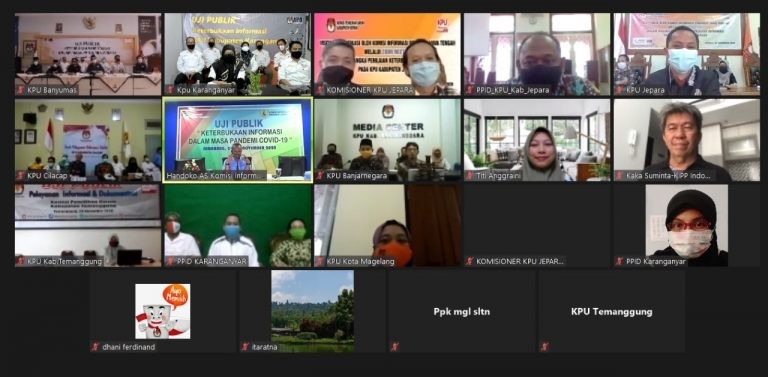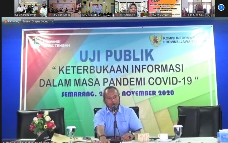 KARANGANYAR – Komisi Pemilihan Umum (KPU) Kabupaten Karanganyar menjalani Uji Publik Keterbukaan Informasi dalam rangka Pemeringkatan Keterbukaan Badan Publik Tahun 2020 yang dilaksanakan oleh Komisi Informasi (KI) Provinsi Jawa Tengah melalui daring Zoom Meeting pada Kamis (26/11/2020).